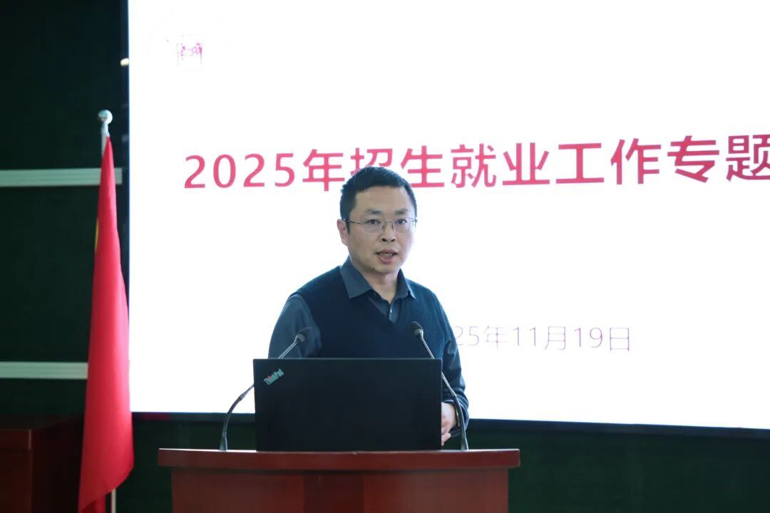 招生就业处处长彭曦作《2025年本科招生、就业工作总结与相关思考》专题报告,分享我校2025年本科招生录取情况与毕业生就业工作进展,总结过去一年工作中的亮点与痛点,并汇报了下一步的工作思考与改进方案。