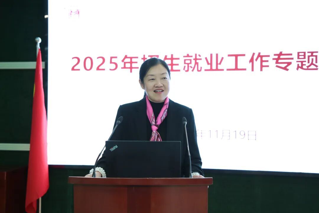 许涛书记就数智新财经战略下做好招生就业工作作动员讲话。他表示,当前学校正紧密结合国家战略,锚定“建设鲜明财经特色世界一流大学”的目标,全力推进学科体系重构,着力推动体制机制改革,为培养财经类拔尖创新人才铺路筑基,要立足数智化发展浪潮与高等财经教育转型关键期,做好招生就业工作。一是要审时度势,深刻认识当前的形势和机遇,既勇于面对传统人才培养模式受到的挑战,也积极把握“财经+”交叉学科融合发展新路径,持续深化数智化改革;二是要学深悟透,认真领会党的二十届四中全会等重要会议精神,贯彻落实“高等教育提质扩容”“促进高质量充分就业”等要求;三是要脚踏实地,落实落细招生就业工作,总结推广成功经验,补齐培养改革短板,纵深推进数智新财经发展战略。他强调,要在学校党委的领导下,聚合全校之力,推动明年招生就业工作取得佳绩。