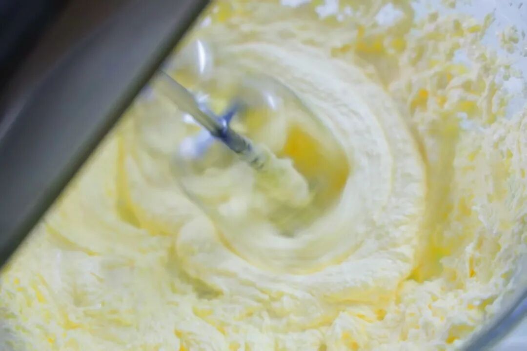 2.加入糖粉搅打至发白膨松状态。