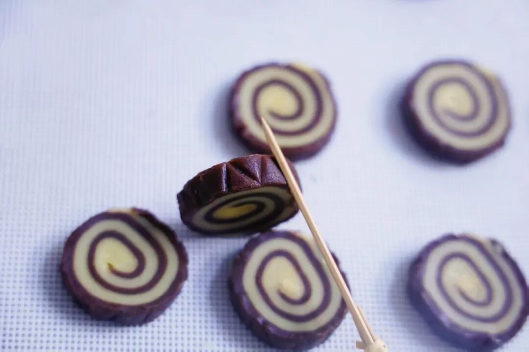 10.均匀切分,外圈用牙签压出纹路。