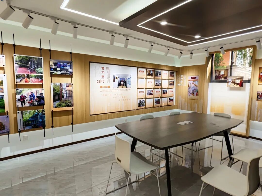 而原本的活动室区域,则变身为一个生动的“社区治理博物馆”。在改造中,居民区创新性地将空间改造与治理成果展示相结合,把会客厅打造为激发居民自治意识的重要阵地。在别具匠心的墙面设计中,墙面的一边展示居民区特色的党建“四协”(协助、协力、协同、协商)工作法和“三驾马车”“四位一体”工作经验,另一边则以照片墙形式记录近10年微更新历程。特别设置的时间轴生动再现了地下车库消防系统改造、网络全覆盖等重要项目的推进过程。“每个展示内容都是居民亲身参与的故事。这种可视化展示让居民真切感受到‘人人有责、人人尽责、人人享有’的治理理念,有效提升参与热情。”