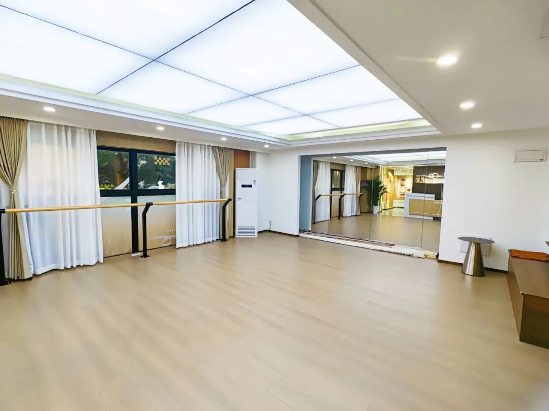 据介绍,会客厅的前身是居委会的活动室和舞蹈房,但该空间功能区域单一、墙面空间有限,且室内桌椅设施陈旧,难以满足居民需求。“我们居民区里的舞蹈队伍很多,有拳操队、民族舞队、踢踏舞队、健身操队等6支舞蹈队伍,对于舞蹈空间的需求较大。”虹桥新城居民区党总支书记朱磊介绍道,“趁着这次打造会客厅的契机,我们打通了活动室和舞蹈房,对舞蹈房进行了全面升级,增设了专业的舞蹈杆、大镜子和木地板。”