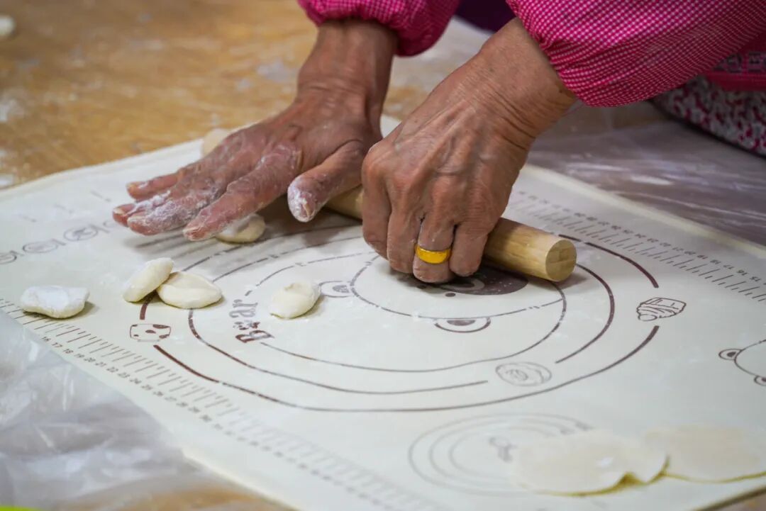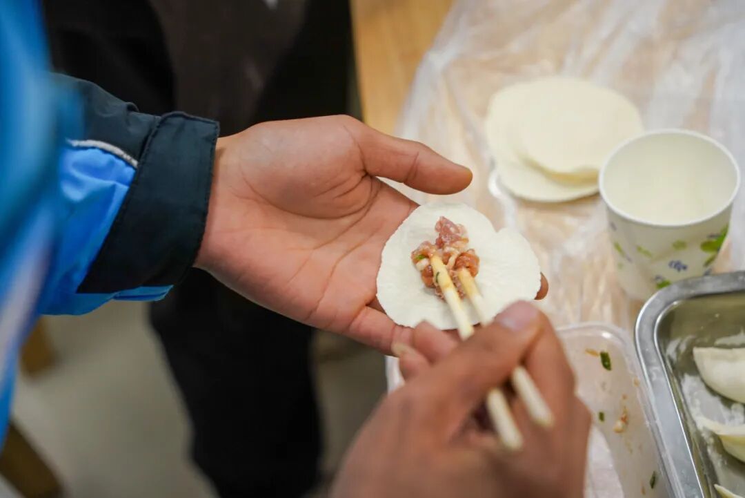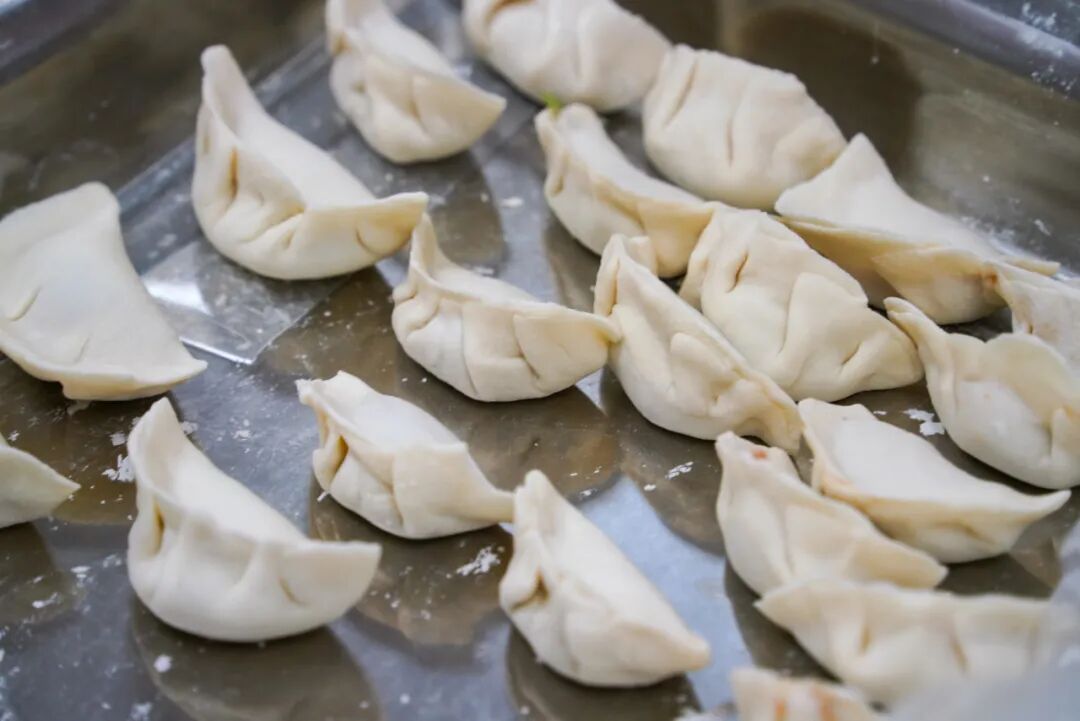 暖心厨房内的长桌被围得满满当当,志愿者们分工有序,有的麻利地擀着饺子皮,有的调拌着馅料,还有人提前备好了消毒干净的碗筷。刚送完一单外卖的骑手小哥,摘下头盔就凑了过来:“我们干骑手的,饭点正是最忙的时候,有时候啃个面包就算一顿,今天能和大伙儿一起包饺子,这才叫吃饭!”他拿起饺子皮,学着志愿者的样子放上馅料,手指捏合间虽有些笨拙,却格外认真。一只只饺子在桌上渐渐排起了队,形态各异却都透着满满的心意……