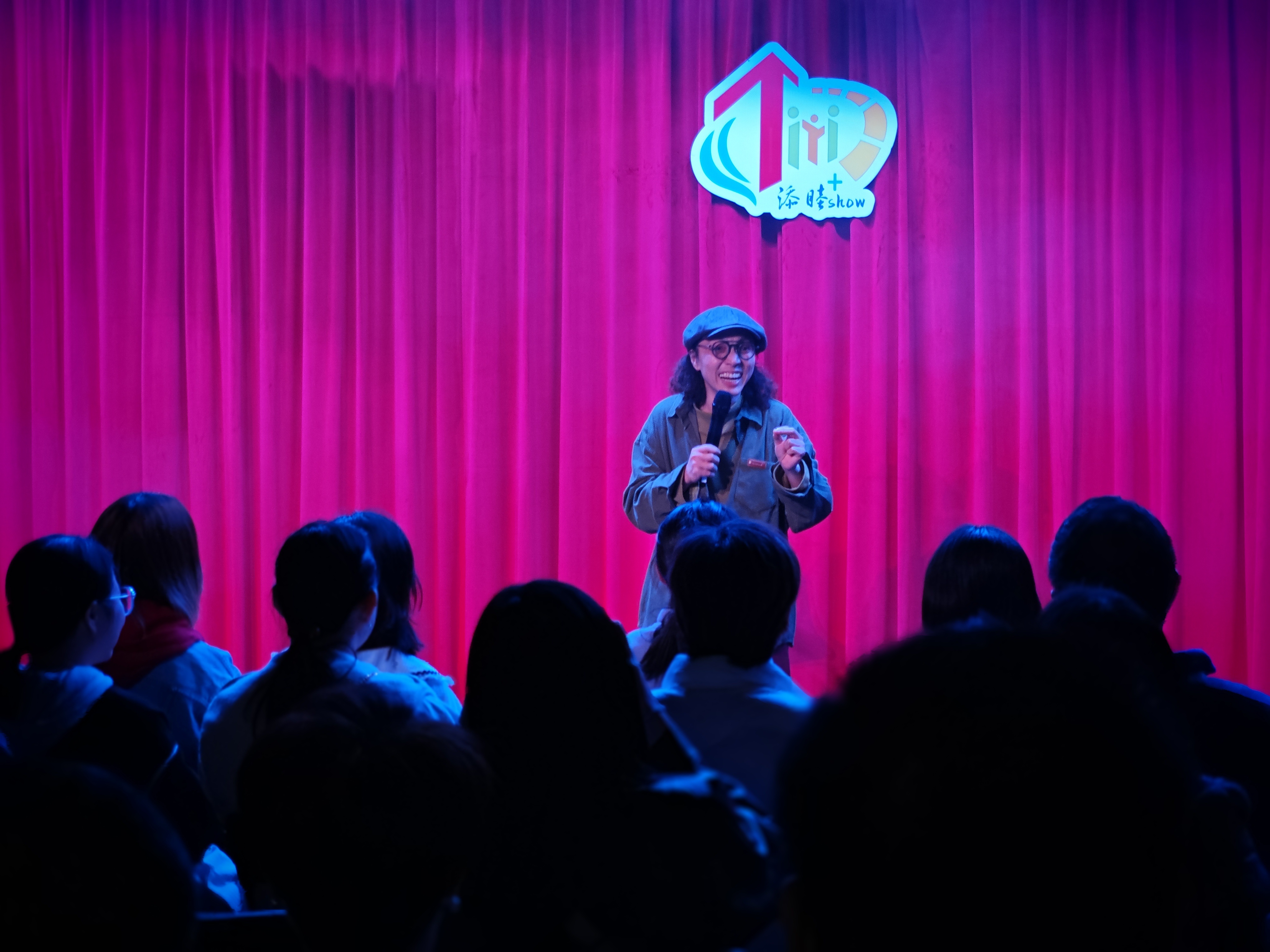 舞台上,演员们各展所长:倪午阳将周报与段子巧妙融合,王三用数学模型计算老板的搞笑指数,神秘女演员以段子对抗内卷,蔡振杰则通过魔术与吐槽带来双倍解压,现场笑声与掌声此起彼伏,更有观众自发用沪语回应互动,形成温暖的语言共融氛围。