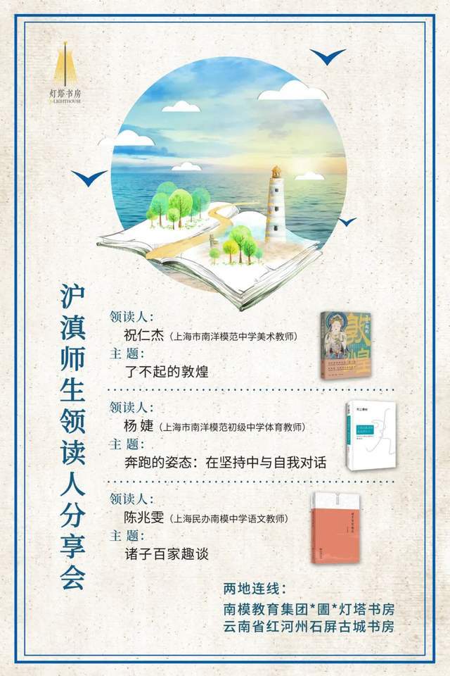 今年同样由南模教育集团的3位老师作为“灯塔领读人”,分享艺术、体育、语文等不同领域书籍,不仅包含了对书籍本身的理解和解读,更是将专业所长传递给学生,通过阅读更好地拓宽视野,了解世界。20位两地中小学学生也将作为学生领读人,进行喜爱的书籍分享和推荐。