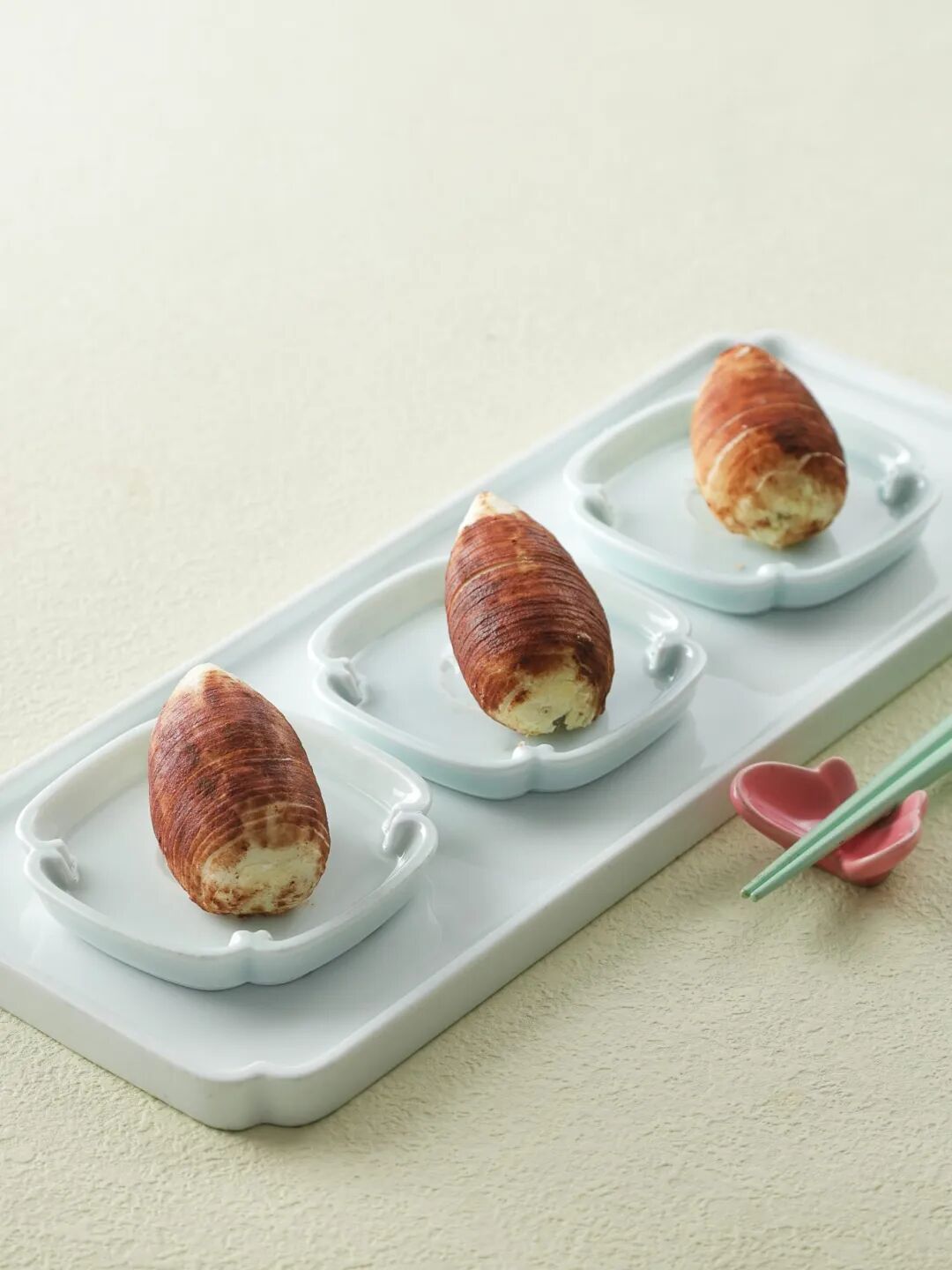 绿波廊的非遗手工酥点堪称豫园的招牌之一,这次他们取当季食材,推出了一道“鲜蟹香芋酥”。盘子里的“芋艿”似乎还带着大地泥土的芬芳,实际上每一颗都来自点心师们的手工刻画,大可安心食用。里面的馅心以芋头、蟹肉按比例混合而成,绵软的芋头融合了鲜甜的蟹肉被酥皮一起紧紧包裹,吃起来鲜绵酥脆,让人印象深刻。