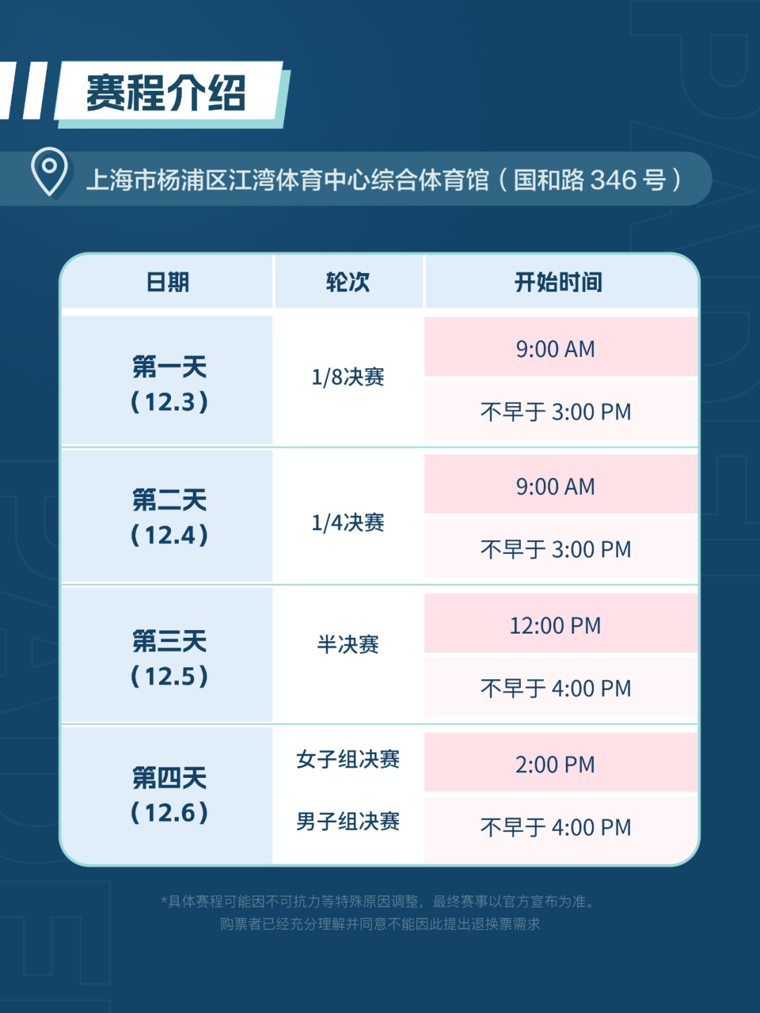 在杨浦区江湾体育中心综合体育馆举行,