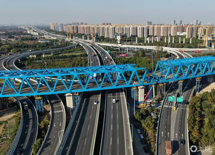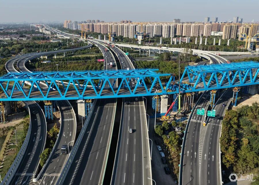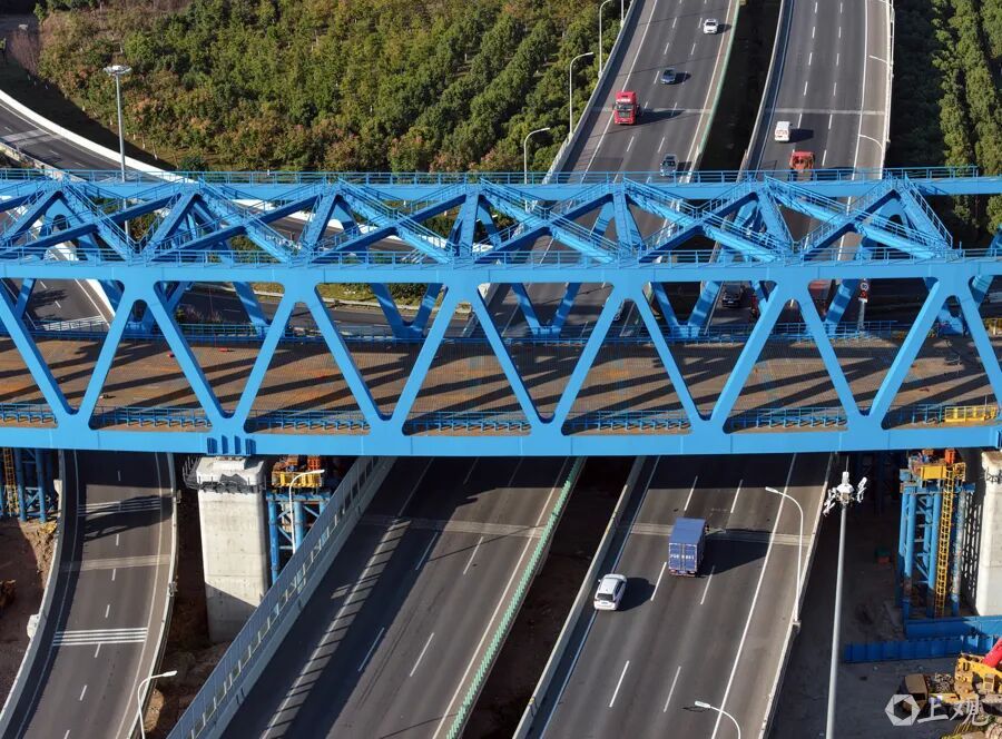 国家重点工程沪渝蓉高铁钢桁梁已经平稳跨越S7沪崇高速主线及匝道顺利完成顶推施工。 项目团队打造“全天候智能监控+动态防护”一体化保障体系,24小时实时监测路况并精准预警,错峰在车流低谷期开展高空作业;同时对挂篮进行全封闭兜底处理,加装防漏防渗层,实现施工与通行“双安全”。针对高空作业安全管控和大体积混凝土施工难题,项目部署全方位智能监控系统,实时识别违规操作并预警;在梁体腹板设置“梅花形”振捣通道提升混凝土密实度,采用智能喷淋养护系统实时调控温湿度,有效抑制表面开裂风险。
