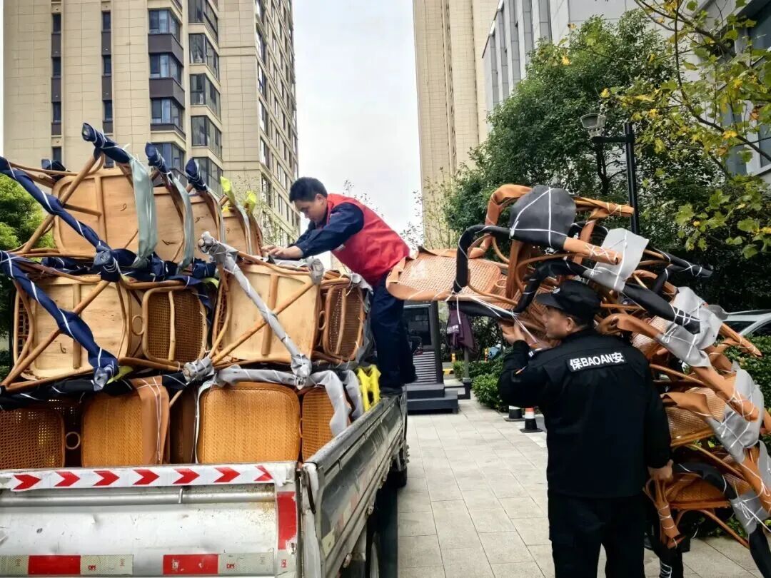 面对要为高龄老人发放的爱心物资运输不便、搬运困难的问题,奉浦三居党总支牵头,大至物业主动参与,对接肖塘片区居委会组建专项运输小组,提前统计藤椅、轮椅等物资需求数量,并规划运输最优路线,驱车往返耗时约2小时,将57个爱心藤椅、15个轮椅安全送达指定地点,确保爱心物资能当天发放、当天收到。