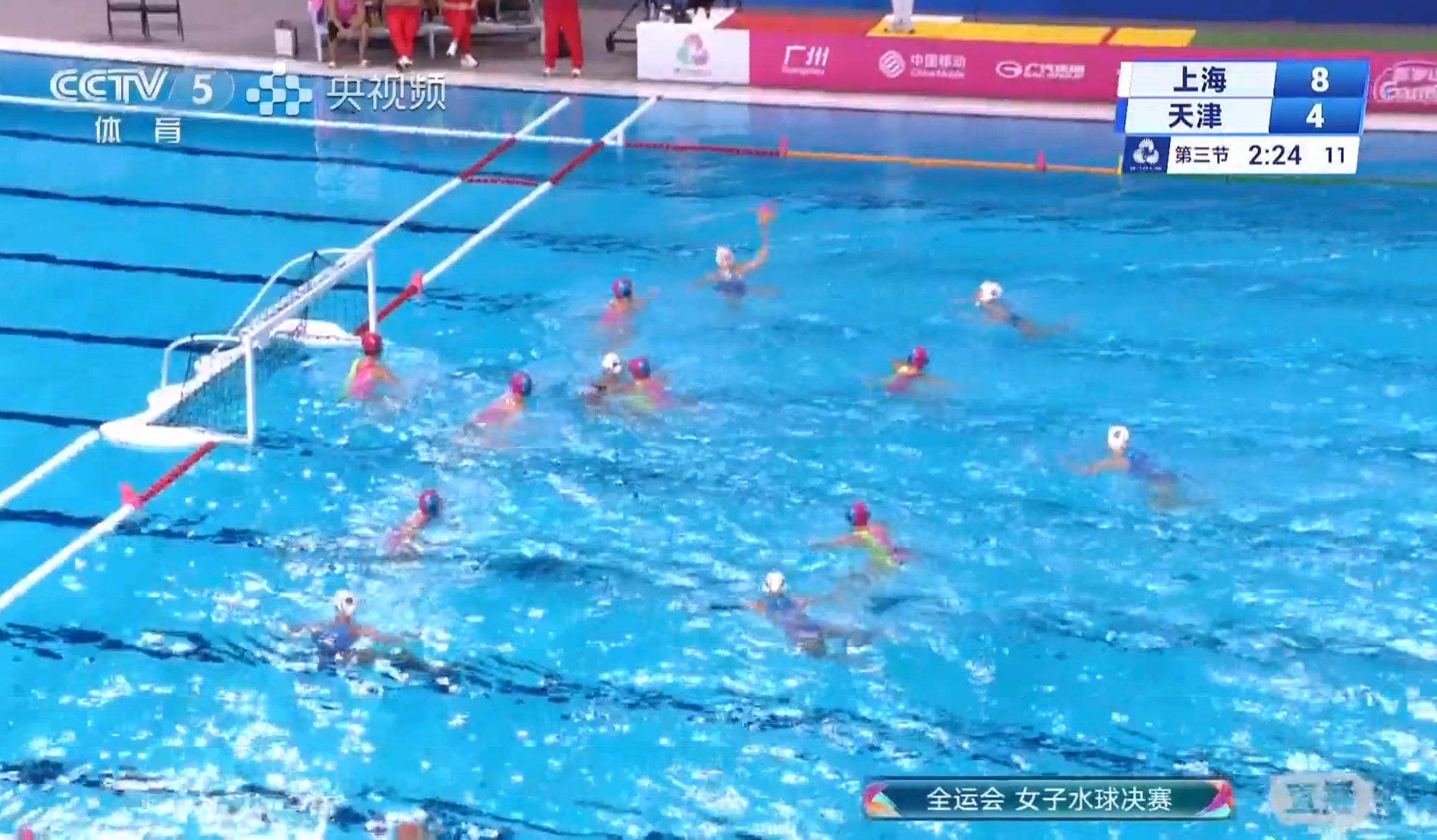 在刚刚结束的第十五届全国运动会女子水球决赛中,上海队以12:6战胜天津队,摘得金牌。队员邵轶歆来自松江。