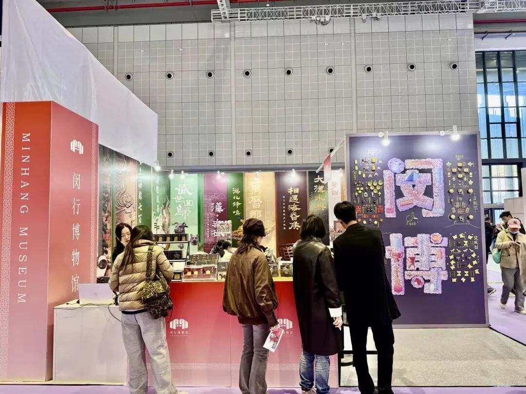 本届长三角文博会上,闵行博物馆的展位位于国家会展中心(上海)6.2号馆C-08。首次以独立展厅参展文博会,闵博做足了准备,将博物馆的经典体验“搬”到了现场。展台设计以极具特色的海报墙开场,集中展示了闵博过往特展与常设展的精粹,其中常设展海报更是首次对外公开亮相。