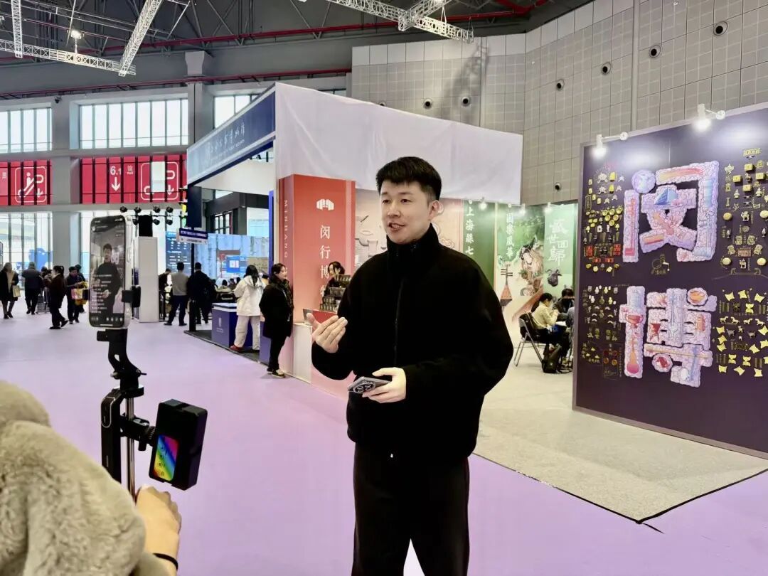 “今天的直播场景很特别啊,闵行博物馆来到了长三角文博会的现场……” 11月20日中午12点,在第六届长三角国际文化产业博览会闵行博物馆展位内,一场轻松又“有料”的直播正通过手机屏幕吸引着众多线上观众。闵行博物馆宣教部主任徐迪化身主播“小迪哥”,一边带着网友“云逛展”,一边揭秘闵博首次登陆长三角文博会的精彩看点,并提前剧透了将于明年1月中旬推出的重磅特展——“丝路启航:新疆丝绸之路上的璀璨明珠与文明印记”。