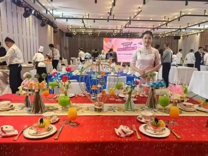 创意下午茶摆盘比赛则是一场视觉与味觉的盛宴。选手们充分发挥自己的想象力和创造力,将各种食材巧妙搭配,摆出造型各异、色彩斑斓的下午茶盘。从精致的茶具到别致的摆盘,每一处细节都体现了选手们的匠心独运,让观众在品尝美食的同时,也能享受到一场视觉的盛宴。