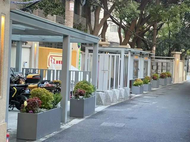 以衡山路525弄为例,从砖墙色彩、围栏样式,到停车布局、绿化景观等,每一项更新都在“三会诊”框架下充分融合专业判断、居民诉求与街区风貌要求。在讨论非机动车停车棚与晾晒区布局时,设计师提出了“美学优先”的方案,将停车棚设置在弄堂口,便于“透”入一墙之隔的景观绿化。但是居民们基于生活经验,坚决要求将晾晒区设置于弄堂口最敞亮通风的位置。面对这一功能与美学的直接碰撞,最终通过“综合会诊”落地的方案,采纳了居民关于功能布局的核心诉求,同时设计师在停车棚改造中融入巧思,采用彩钢板与竹篱笆格栅的方法将街角的绿意延续进来。