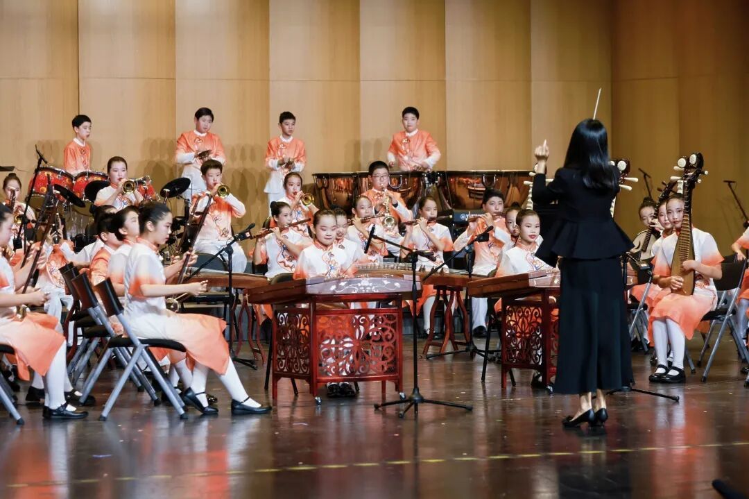 “我们以多校区联动,展现传统与创新的交汇与碰撞。”闵行区实验小学课程研发中心副主任、音乐学科主任米然道出节目编排的巧思,整场演出以“传承、融合、共鸣”为线索,通过民乐与管弦乐的对话、历史与童声的交织,呈现了实小四校区11支艺术团队的精彩演绎。