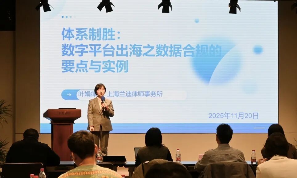 上海兰迪律师事务所叶娟律师以《体系制胜:数字平台出海之数据合规的要领与实例》为主题,不仅分享了数字平台出海数据合规体系化建设的思路、案例,还具体介绍了海外服务器部署的合规要点。她建议,出海企业可以分阶段搭建集团统一的数据合规治理框架,实现境内外合规要求一体化落地,完善跨境数据传输的识别、评估、申报等机制,并结合不同国家法规制定本地化数据合规管理制度。对于服务器部署,企业需要综合考量数据本地化、跨境传输监管等合规要求,以及企业的市场分布、用户集中度等商业要素,来做出既合规又能助力业务发展的服务器部署方案。在分享中,她还结合多个典型案例,提醒企业在出海时重视数据合规风险,避免因不了解目的国数据合规要求、违规跨境传输数据,而遭受处罚、影响业务开展。