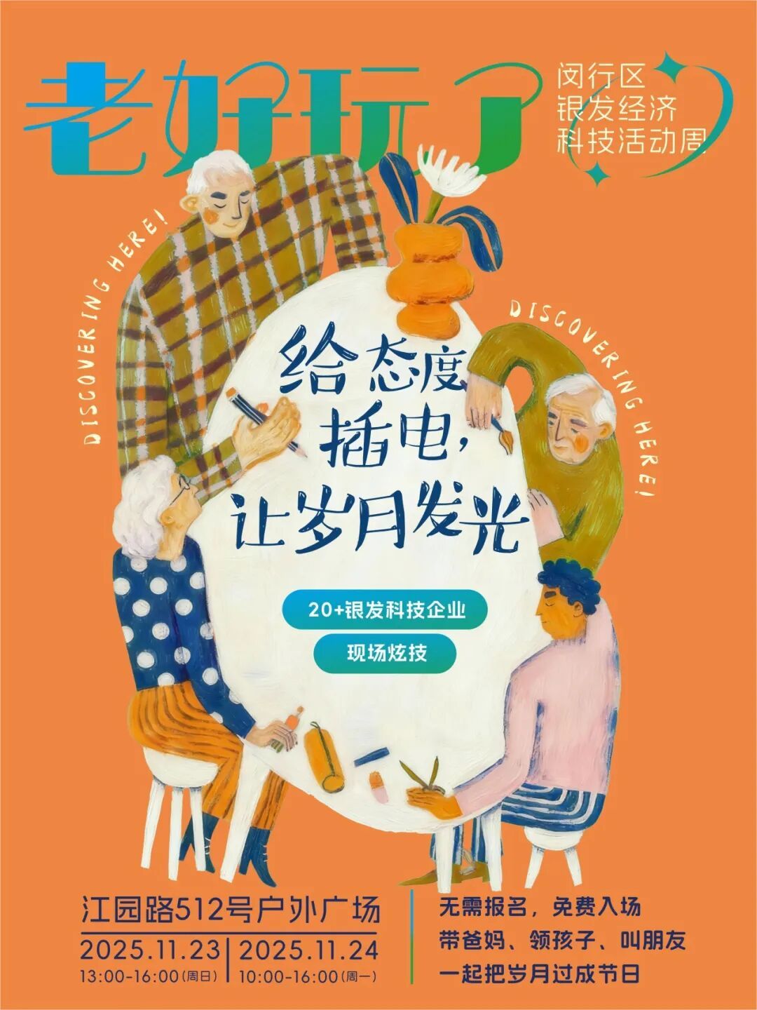 子女帮爸妈挑实用辅具,孙辈陪爷爷奶奶玩智能机器人,老姐妹结伴打卡体验,把科技大集变成家庭聚会,热闹又有意义~各摊位都能坐下慢慢试,不用怕累,放心逛!