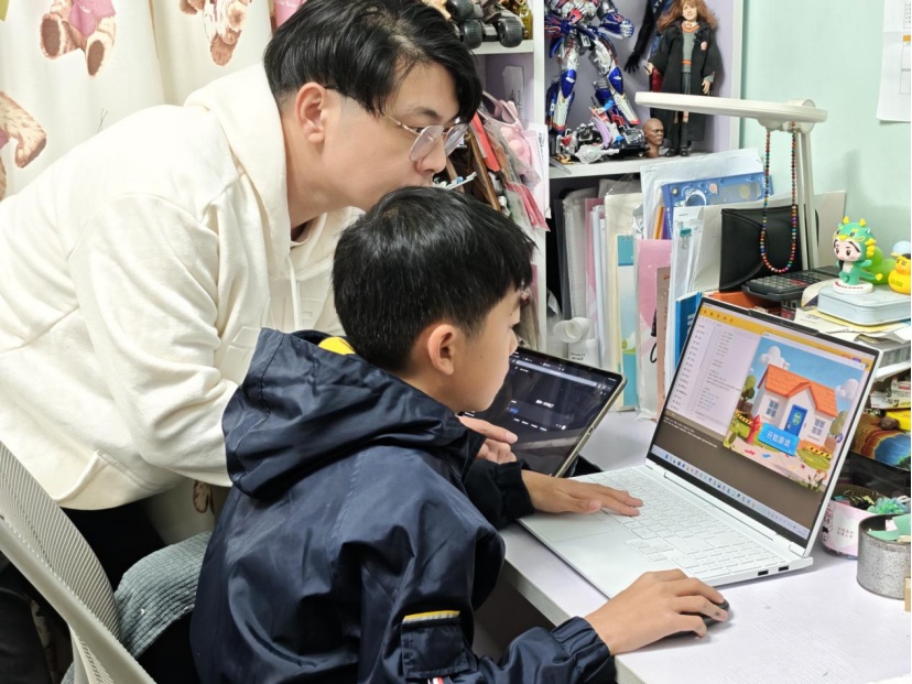 新普陀小学东校傅隽曦家庭聚焦“AI守护・家庭安全小卫士(编程题)”,运用海龟编辑器Python语言精心设计出包含“紧急电话对对碰”“安全用品接接乐”“逃生路线快快跑”三大趣味关卡的编程游戏,将生活中易被忽视的安全常识,转化为可互动、可学习的游戏场景,让科技成为传递安全知识的生动载体。制作过程中,傅隽曦面临的最大挑战是借助AI生成游戏图片素材,在爸爸的指导下她不断尝试与AI对话、优化描述逻辑,在一次次调整中,逐渐意识到AI不仅是辅助工具,更能成为激发新想法的合作伙伴。而她对编程的理解,也早已超越代码本身:“编程,对我来说,早已不是冰冷的代码,而是表达创造、解决问题、连接他人的有力工具,是助我闯荡知识星海的航船。”