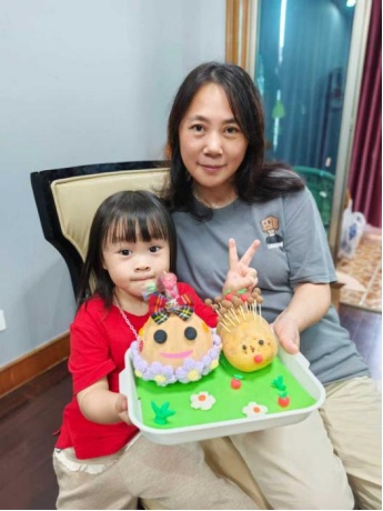来自嘉定区讴像社区的张桂芳奶奶带着自己刚上幼儿园的孙女郭婉欣参加了老年组的“果蔬创想”项目,共同创作了作品“森林里的好朋友”。该作品的创作灵感源自绘本“森林里的聚会”,书中南瓜与小刺猬相伴嬉戏的温馨情节,让祖孙俩灵机一动,决定用家中常见食材,打造这对形影不离的“好朋友”。整个制作过程中,祖孙二人分工明确、默契十足。“南瓜小公主”以饱满的南瓜为身躯,彩色毛线编织的长辫子搭配格纹蝴蝶结,尽显灵动;“小刺猬果果”则以圆润的土豆为基底,粘土捏制的“巧克力”球与小果子错落摆放,牙签制成的尖刺栩栩如生,再配上黑色眼睛与红色圆鼻子,憨态可掬。最后,绿色彩泥铺就的“草地”上,点缀着小巧的花朵与果实,一幅生动鲜活的“森林好友野餐图”就此成型。谈及这次创作,张桂芳奶奶满脸笑意:“我能和孩子一起完成这么可爱的作品特别有意义,不仅锻炼了她的动手能力,还拉近了彼此的距离,感觉祖孙情更浓了,心里别提多开心!”