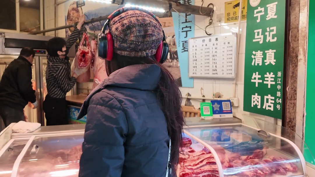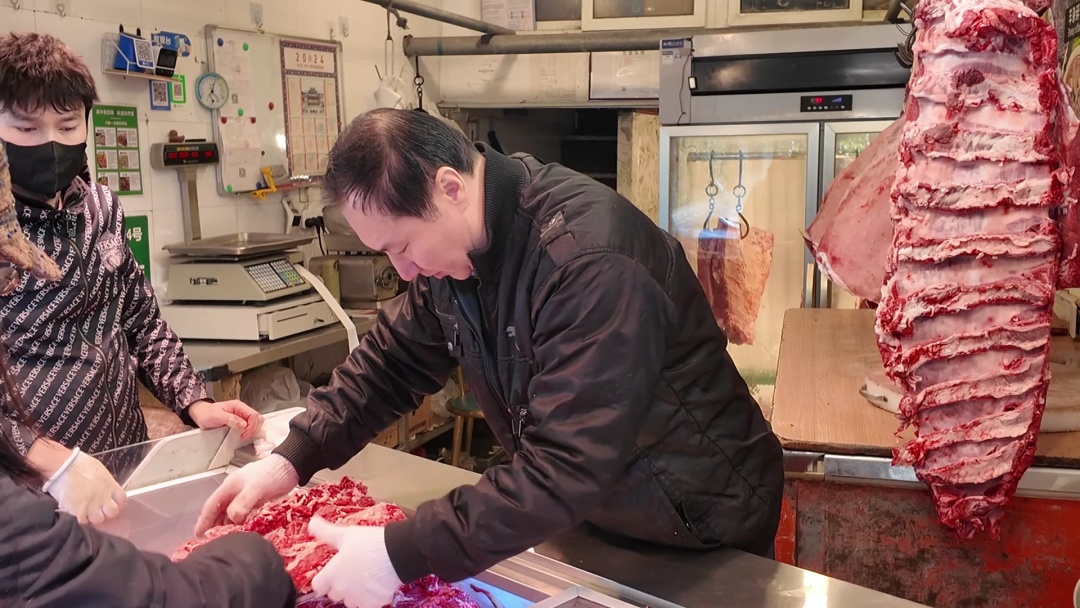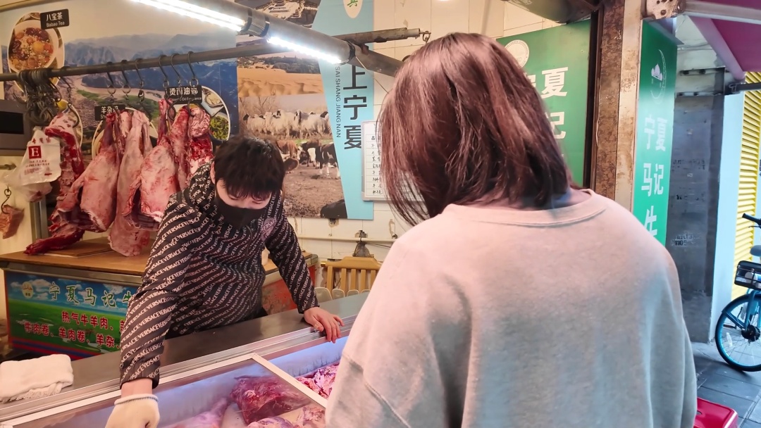 一位正在挑选羊肉的市民热情分享道:“小雪到了,我身体比较弱,所以打算买点羊肉。回家用羊肉炖清汤,再加点萝卜,味道肯定鲜美。牛肉我也打算买一些,要么清炖,要么煎牛排,这两种做法我都很喜欢。”