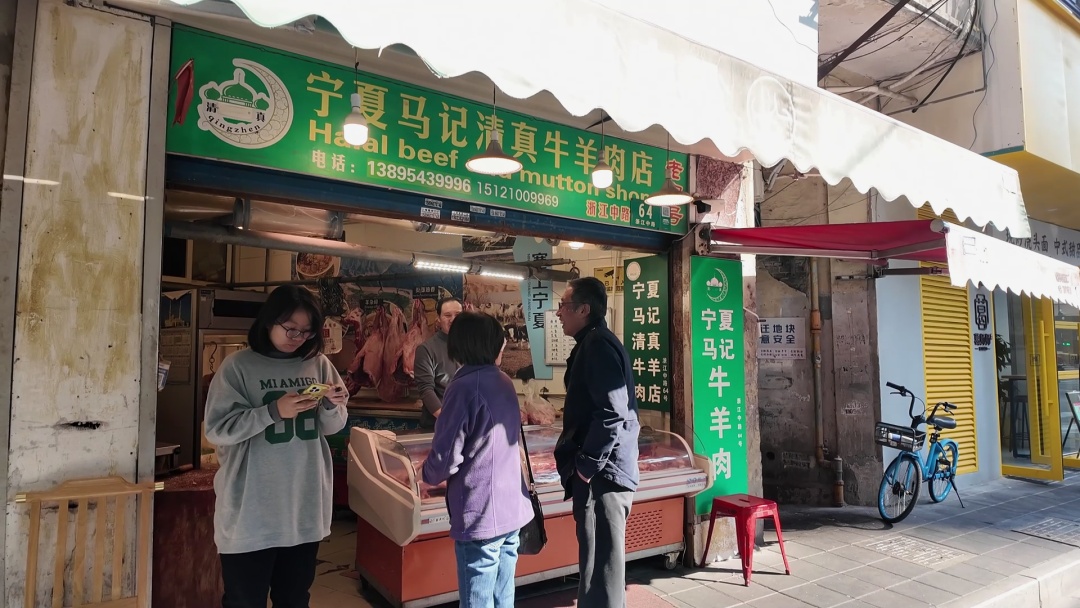 今日迎来二十四节气中的小雪,随着气温持续走低,浙江中路牛羊肉一条街人气很足,众多市民前来选购食材。