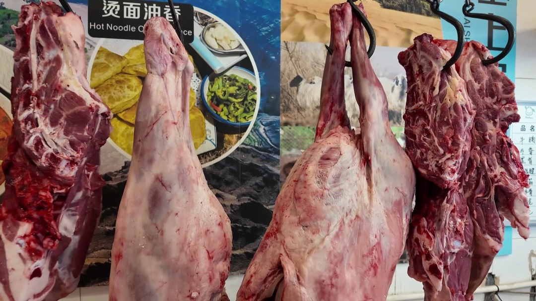 摊主们也忙得不亦乐乎。一位摊主满脸笑意地介绍:“今天是小雪节气,买羊肉的人特别多。我们提前备了十几二十只羊肉,一早上就卖出去七八只了,速度特别快,顾客络绎不绝。牛肉这两天的走量也很不错,大家买回去炖汤、红烧的都有。价格方面,今天还是维持之前的价格,比较正常,没有上涨。我给大家推荐一下,冬天小雪时节,吃点羊肉炖炖汤,再放点萝卜,对身体特别好。”