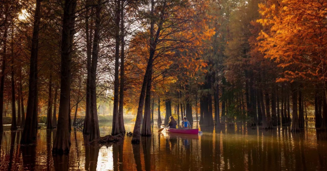 秋风拂过长江口,西沙湿地即将进入最佳观赏期。西沙湿地水森林游船是观赏杉树的绝佳方式,景区特别疏浚了34条潮沟,开通了一条总长2014米的水路。