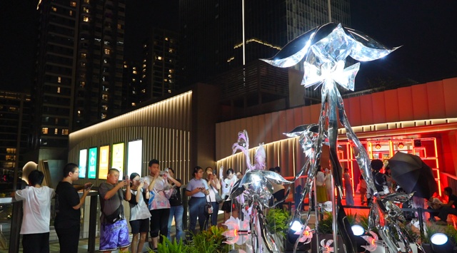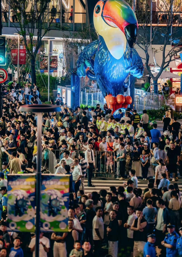 从新研大厦的游戏博物馆到桂林公园,1.9公里路线串联起桂箐路、田林路等干道,覆盖两大商业体、两大生态空间与三大文化场馆。行走其间,二次元元素突破“次元壁”。街角的元界吉祥物“咻咻”指引方向,漕宝路的复古游戏机框景暗藏互动惊喜。据统计,热门游戏巨型装置“流萤机甲”单条打卡量破百万,“瑕蝶的龙”纳入百度地图景点,鹰角武器展凭借企业自主把控实现品质与粉丝满意度双高。