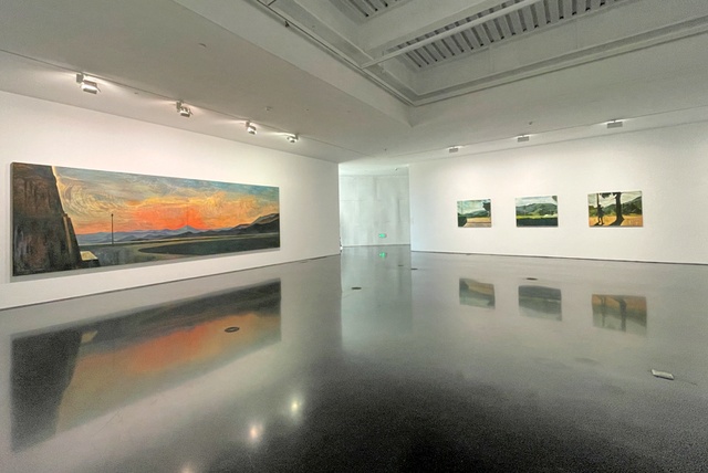 肖江的作品则更像是一次傍晚的登高远眺:从城市边缘向上至山顶,在日光转入黄昏的时段里,某个看风景的瞬间被定格在画作中,云卷云舒,带着风的“笔触”,引人入胜。
