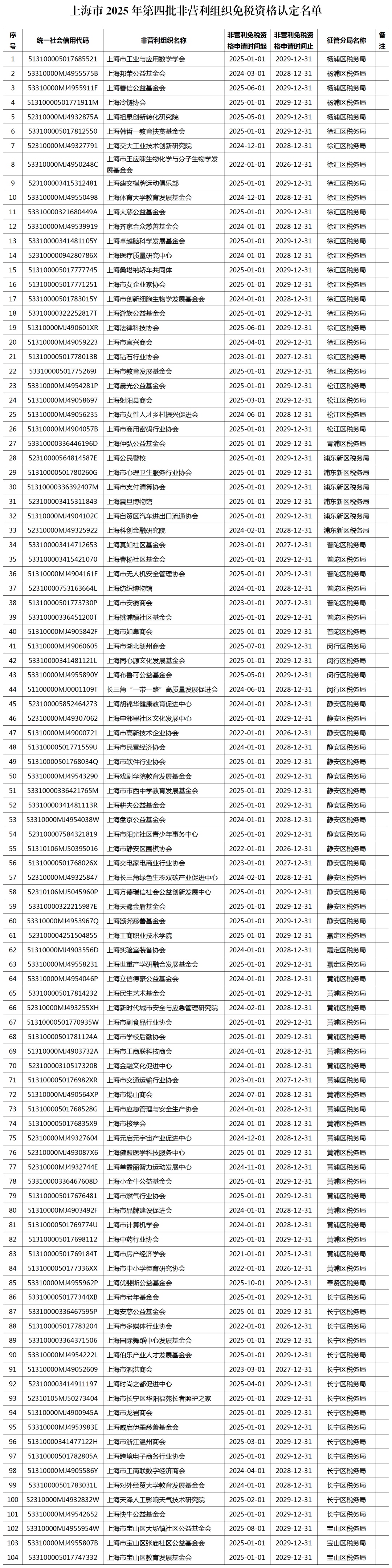 附件:上海市2025年第四批非营利组织免税资格认定名单