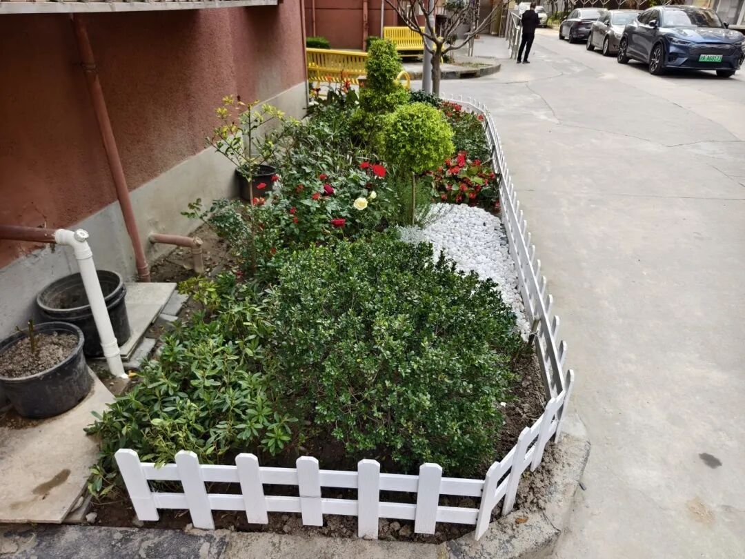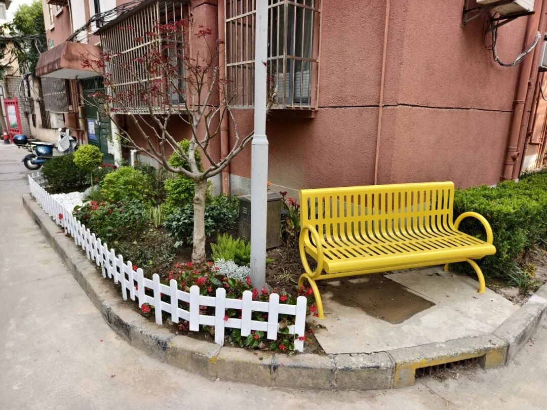 据了解,这些小转角曾经比较杂乱,现在不仅花繁叶茂、干净整洁,还配置了长椅子供居民歇脚聊天,贴心的设计提升了“民生温度”,成了人见人爱的“幸福角”。居民区党总支前期通过入户走访、楼栋座谈等多种方式征集改造意见,最终敲定了“生态焕新+便民休憩”的改造思路。