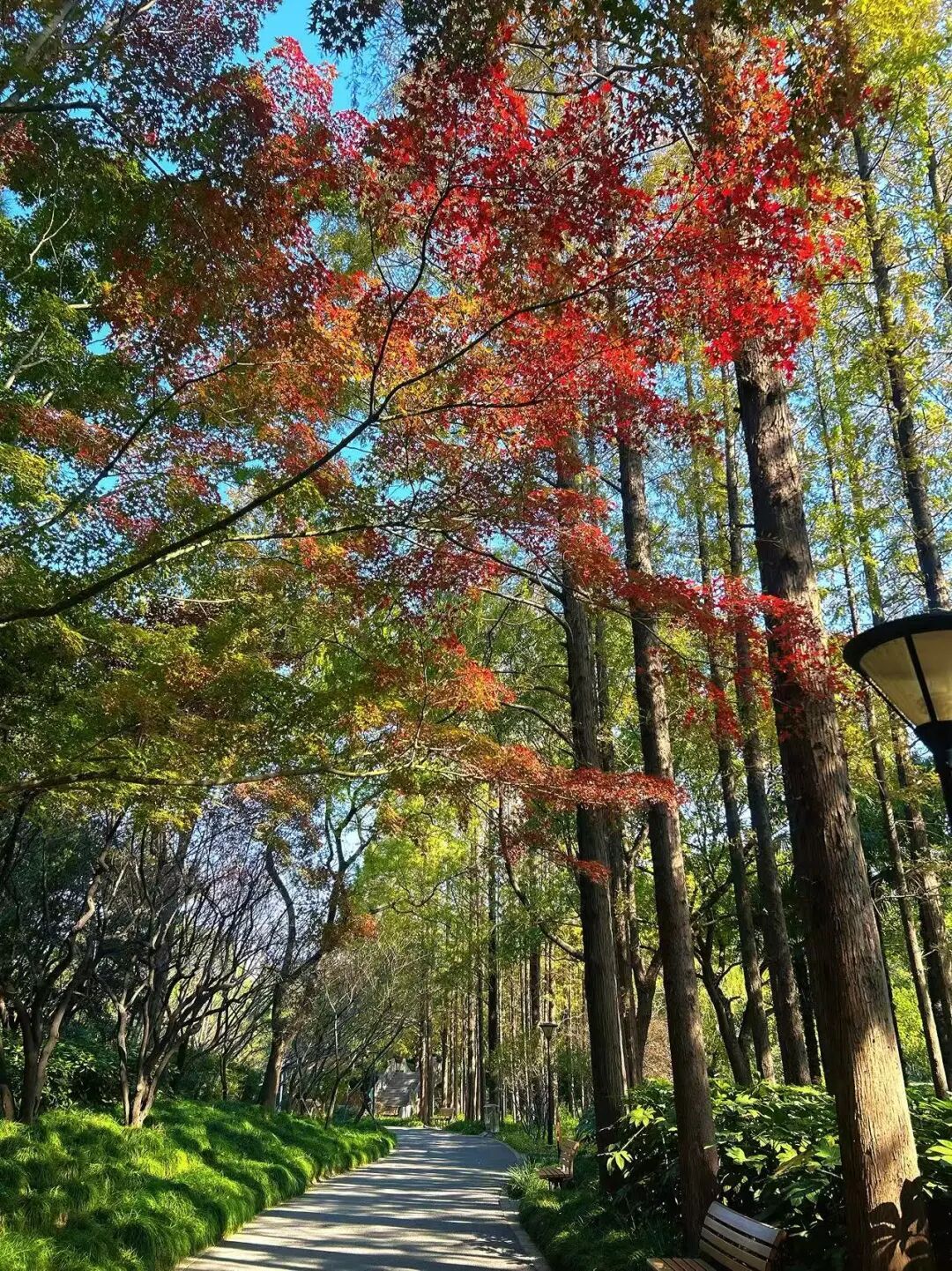 深秋时节层林尽染宝山各公园里金黄与火红交织成一幅浓墨重彩的画卷吴淞炮台湾公园淞沪抗战纪念公园滨江公园共和公园丰翔智秀公园白沙公园南大公园沈杨公园永清苑罗溪公园月浦公园罗泾公园随着季节悄然步入尾声约上三五好友不妨再来公园逛逛秋日的绚烂与沉静正以最温柔的方式为这一年画上诗意的句点