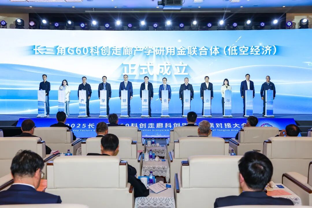 在推动产业创新方面,大会正式启动了聚焦新材料、新能源汽车、低空经济领域的“产学研金用联合体”。G60联席办科创组组长宋苏伟在现场接受采访时阐述了联合体的协同逻辑:“我们充分利用‘产学研用金’体系,让大学主动向市场化导向靠拢,同时政府扶持基础研发,形成互补。”他特别以低空经济为例说明跨区域协同的必要性,“低空经济面临的最大问题是应用场景不足。长三角G60科创走廊正积极探索跨区域协同,例如计划与中国铁塔总公司合作,沿高铁、高速及内河航道布局低空经济应用场景。”