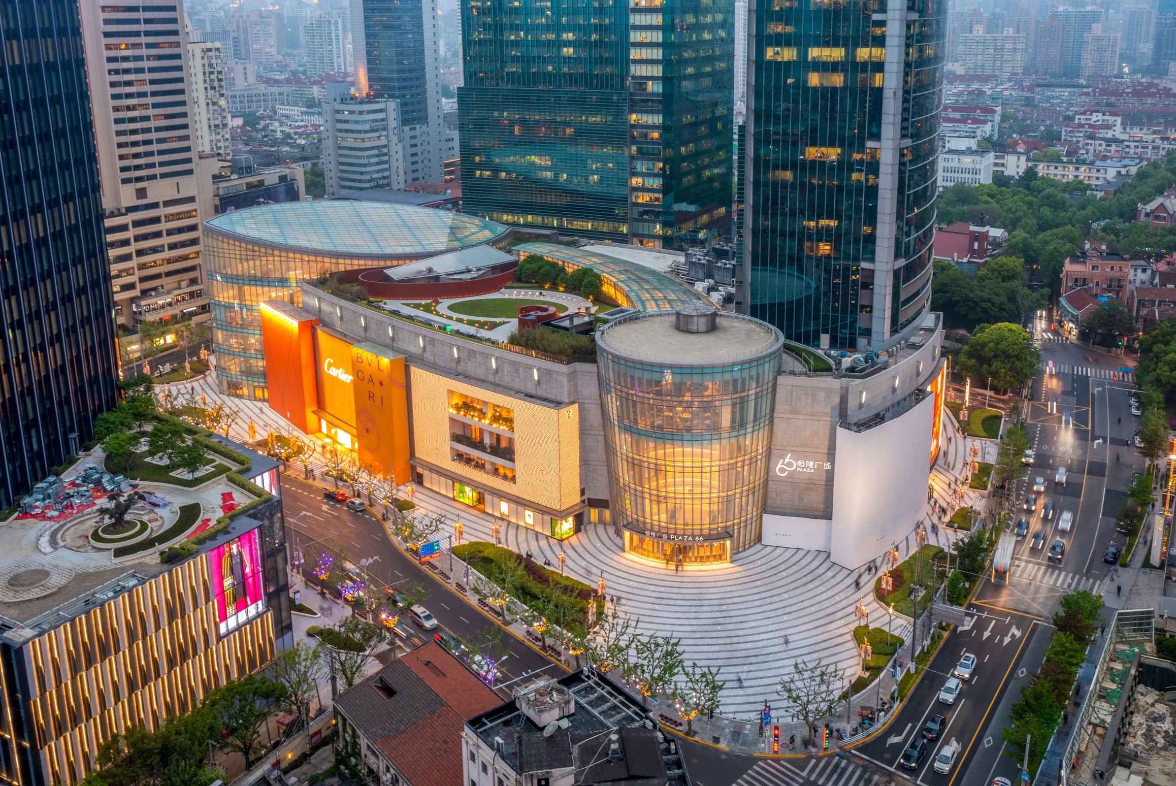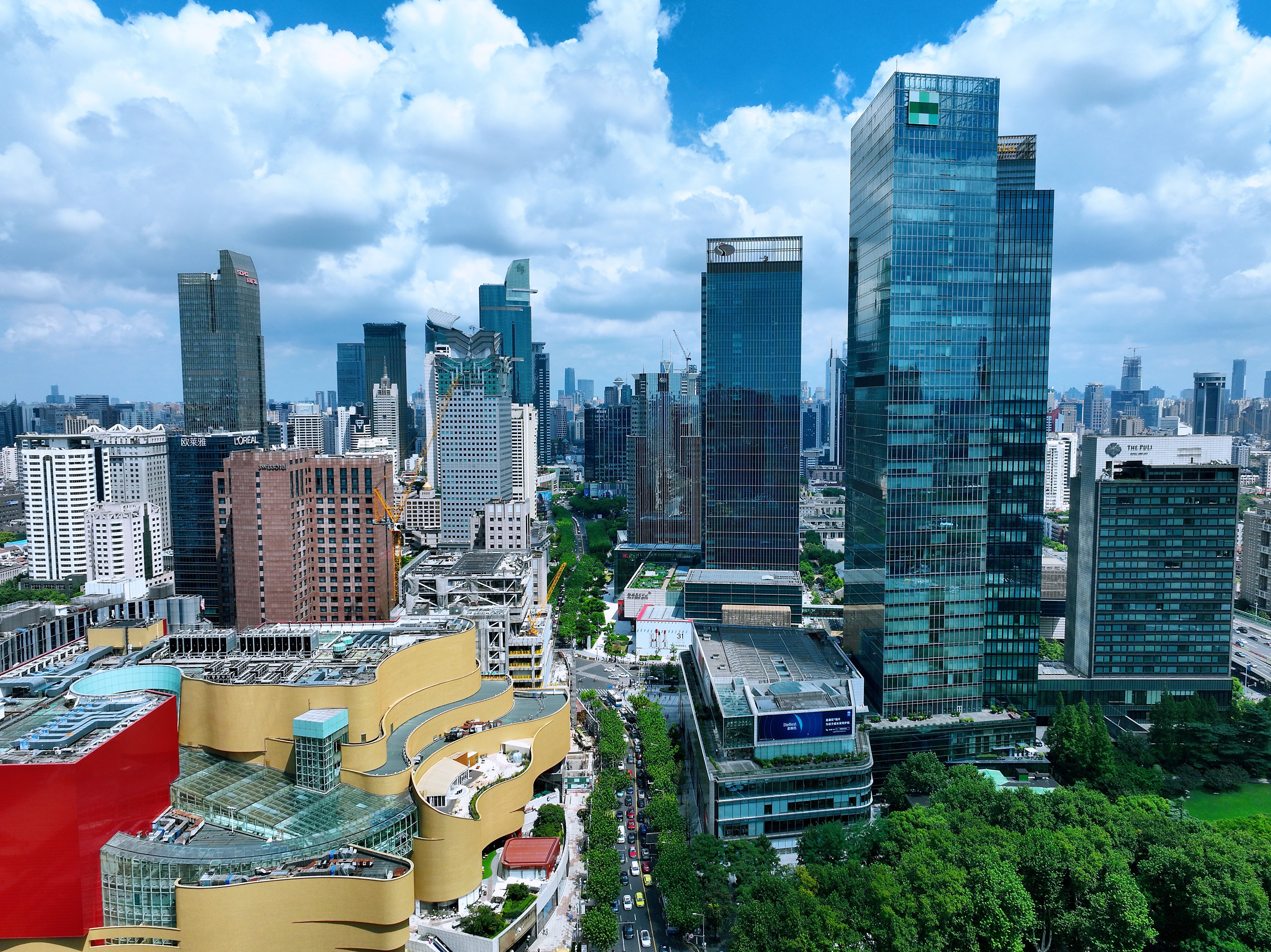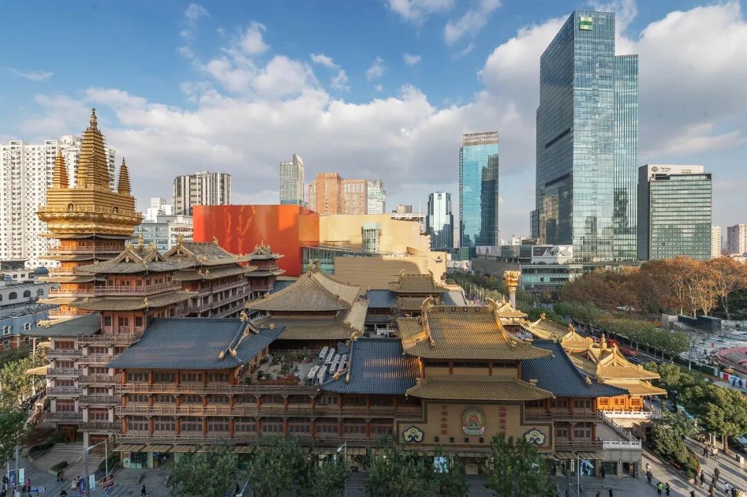 再往西,上海恒隆广场、中信泰富广场、锦沧文华广场等繁华商业地标一字排开,国际大牌橱窗琳琅满目。上海展览中心、静安寺等标志性建筑错落于摩天楼宇间,千年古刹飞檐斗拱与现代商圈相映成趣。