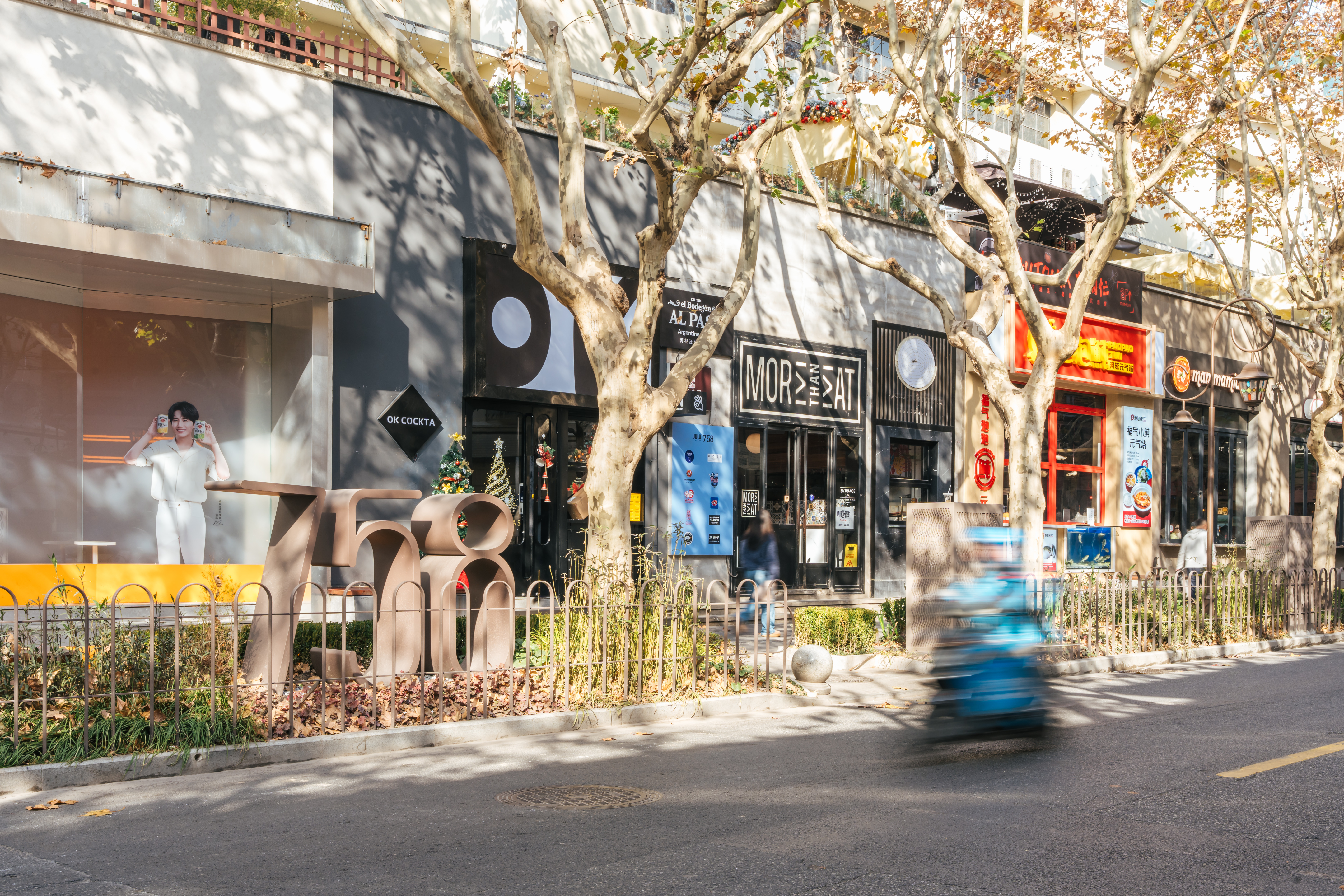 跑过静安寺,左转跑进华山路,会看到梧桐树叶愈发浓密,城市节奏悄然放缓却更显格调。华山路至常熟路一带,正是跑圈津津乐道的“巨富长”街区(巨鹿路、富民路、长乐路)。老洋房、设计师店、国内外时尚潮牌与咖啡店藏身其间,秋冬的梧桐金叶铺地,跑者的每一步都将踏在“最上海”的浪漫韵律上。