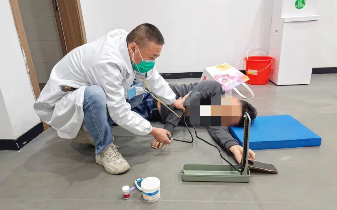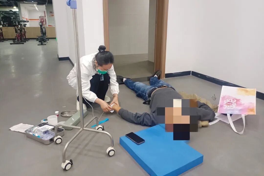 11月28日上午,柘林镇柘邻坊功能社区里的健身房内发生惊险一幕:一名45岁的男子在健身15分钟后,于更衣室门前突然晕倒。现场人员第一时间呼救,同在功能社区里的柘林镇社区卫生服务中心如意卫生服务站的医护人员接到消息后,立即携带急救设备赶赴现场。