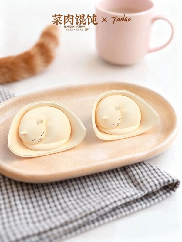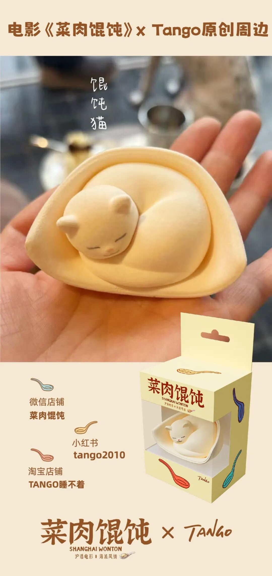 设计理念:“馄饨皮” 是生活的容器,裹着的慵懒睡猫是平凡里的小松弛 —— 就像电影里的市井故事,烟火气里总藏着不期而遇的暖意。