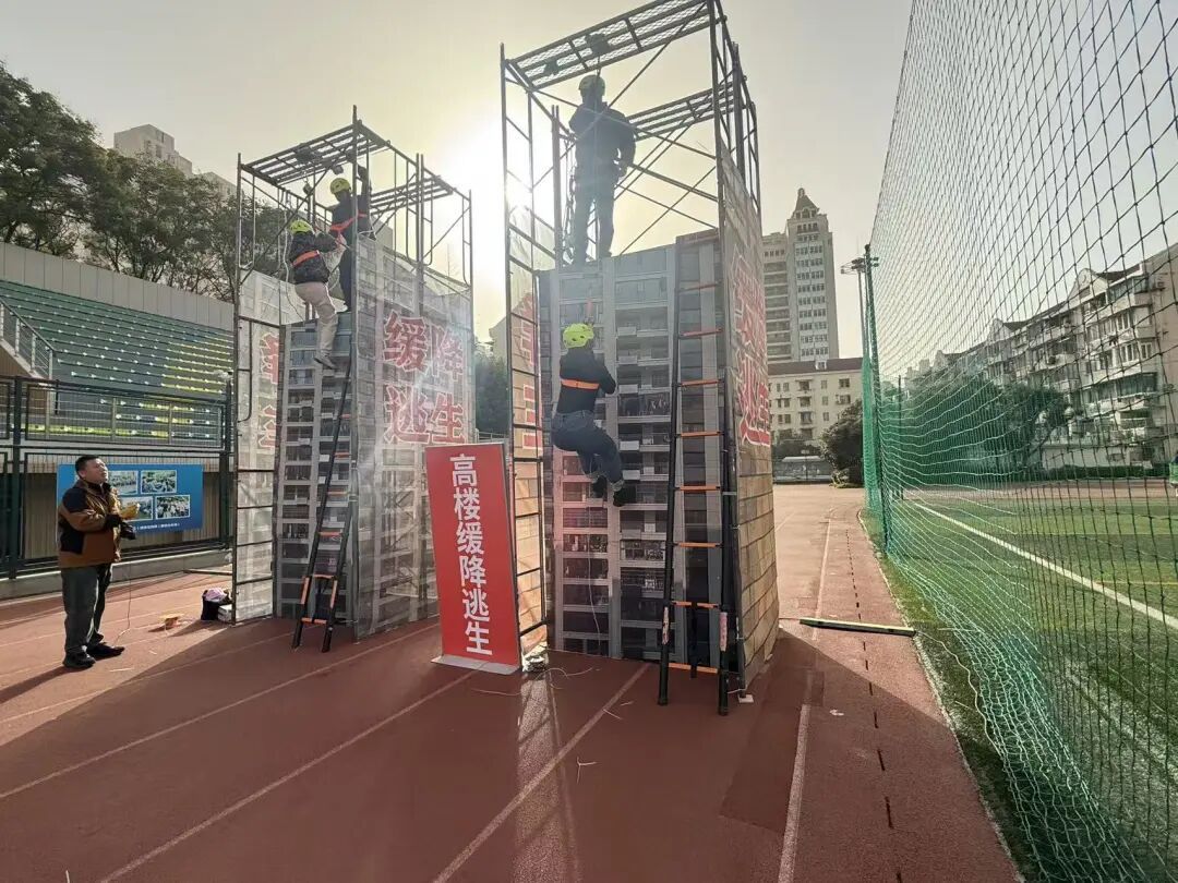 赛场上,紧张有序的竞技项目巧妙地将消防实操技能融入趣味比拼。初赛阶段设置了“快速着装”“破障逃生”“高空缓降”三个环节,模拟了火场应急响应的关键流程。各参赛队伍团结协作,争分夺秒,最终以团队用时最短为标准晋级决赛。