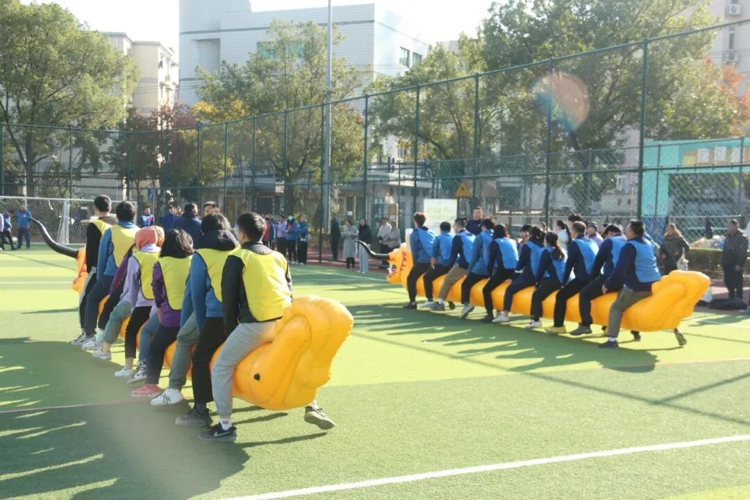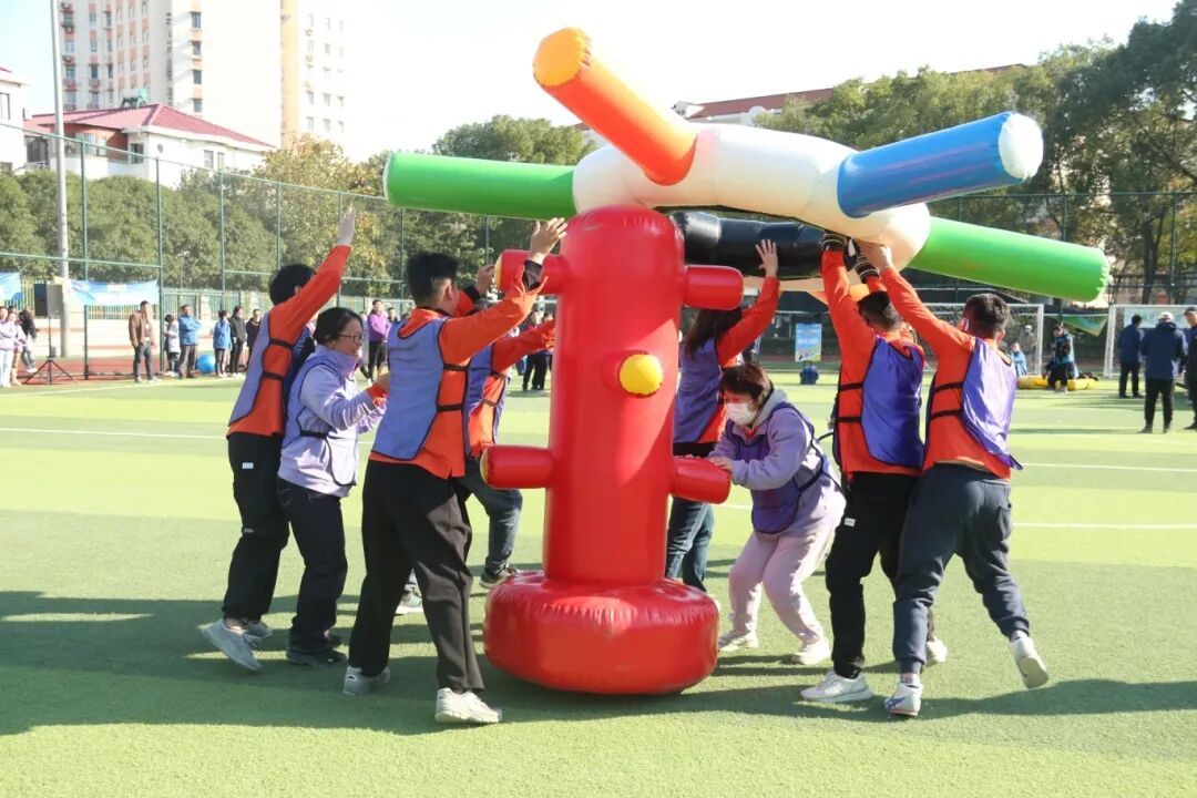 活动设置4个趣味项目及拔河争霸赛,兼具趣味性与协作性。“精益求精”中,8名队员分工协作引导“旋转章鱼”穿桩,锤炼“绣花”功夫;“暖心速递”里,4人踩充气竹筏接力,跑出民情快办“加速度”;“有求必应”将团队协作与民生责任相融,10人分组衔接完成任务,展现快速响应能力;“同舟共济”中,10人同乘充气龙舟同步发力,诠释协同要义。压轴的拔河争霸赛点燃全场,参赛队员咬紧牙关、奋力后拉,身体与地面呈四十五度角抗争,寒日里的汗水与此起彼伏的呐喊声,将气氛推向高潮。