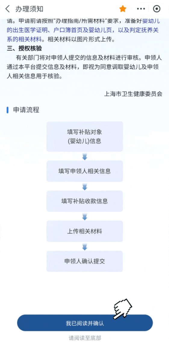 7.按页面提示上传婴幼儿(补贴对象)的出生医学证明、户口簿首页及婴幼儿页,以及判定抚养关系的相关材料,确认提交后等待审核结果。