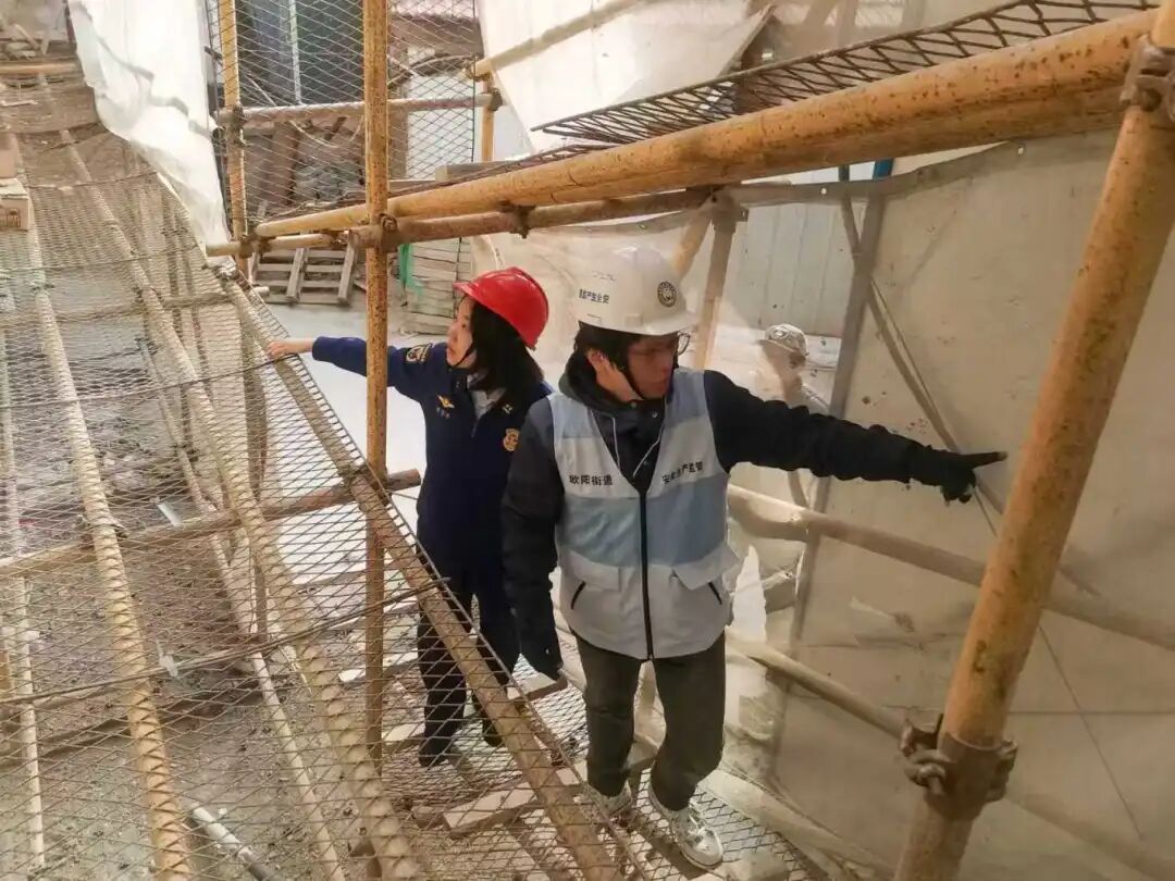 联合检查组先后对水电路261弄21-34成套改造项目、祥德路208弄1-16号成套改造项目、天宝西路新建工程等重点场所进行了深入排查。重点对高层建筑外墙改造项目、消防水源落实情况、居民社区美丽家园项目外墙改造脚手架搭建情况等关键环节开展实地检查。检查过程中未发现使用竹木等易燃材料搭建脚手架的情况,现有脚手架均为钢制围网脚手架,其围网防火标准均达到B1级,从材料源头上有效降低了火灾蔓延风险。