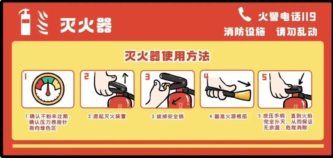对于初期火灾,可以使用灭火器进行扑灭。建议家庭选择购买干粉、水基型灭火器,其适用范围较广。