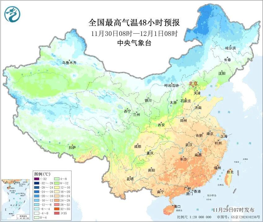 此轮升温的节奏即将被冷空气“打断”。明天东北、华北一带将加入降温行列,12月初降温范围将逐渐扩展到南方。下周申城多云天气为主,周初气温略有下降,在11~17℃。周二起受一股较强冷空气影响,申城将有一次大风降温过程,预计周三的最高气温降至9℃,周四早晨叠加辐射降温,市区最低气温在4℃,郊区或在冰点附近。还请大家及时关注气温变化,谨防呼吸系统和心脑血管系统等方面疾病的发生。另外持续晴朗天气,空气干燥,勤补水并注意用火用电安全。