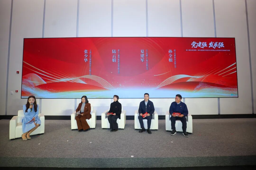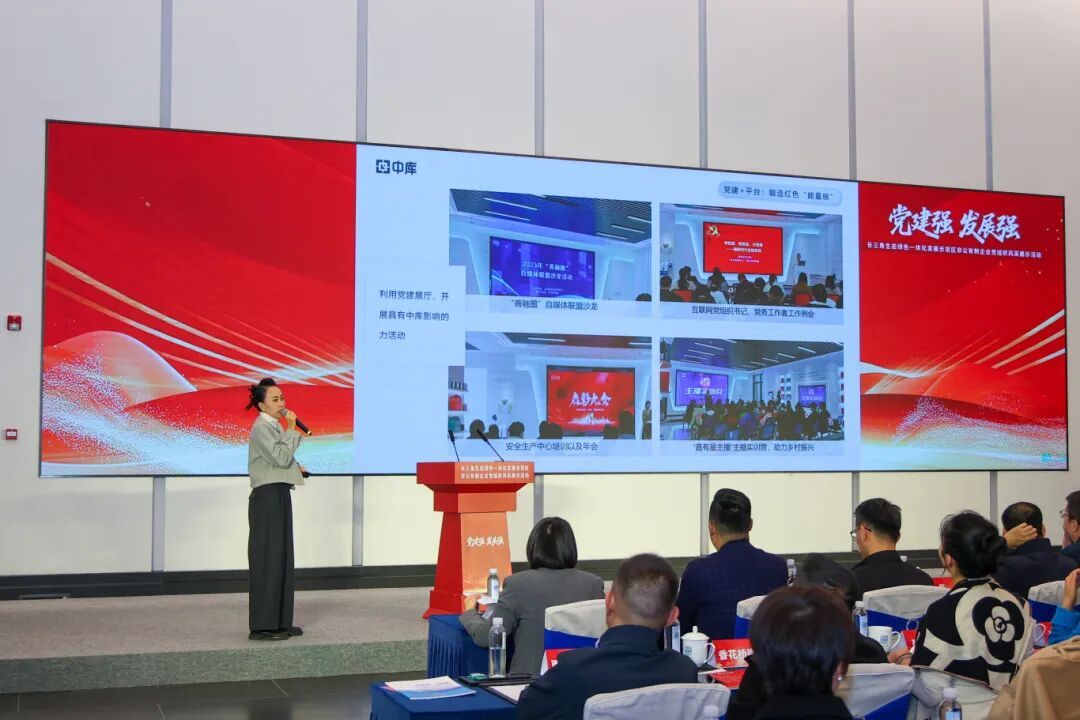 在风采展示环节,圆通速递有限公司、亨通集团有限公司、中库云科技(嘉兴)股份有限公司代表各自分享党建引领企业高质量发展的实践经验与思考探索。