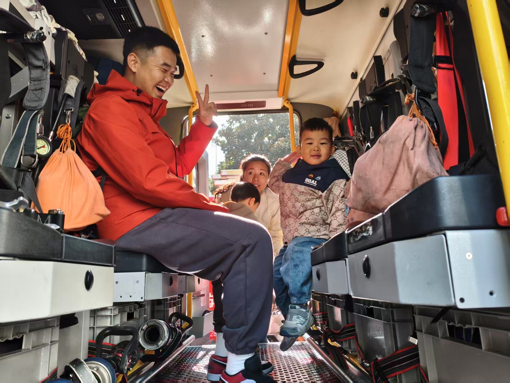 11月以来,静安区各基层队站和消防体验馆开放日迎来了众多亲子家庭。在闸北消防救援站,孩子们体验消防水枪,参观消防员宿舍,聆听照片背后的抢险故事。一位家长在中兴消防救援站的活动后表示:“沉浸式的体验不仅让孩子学到了知识,也加强了我们的消防安全意识。”