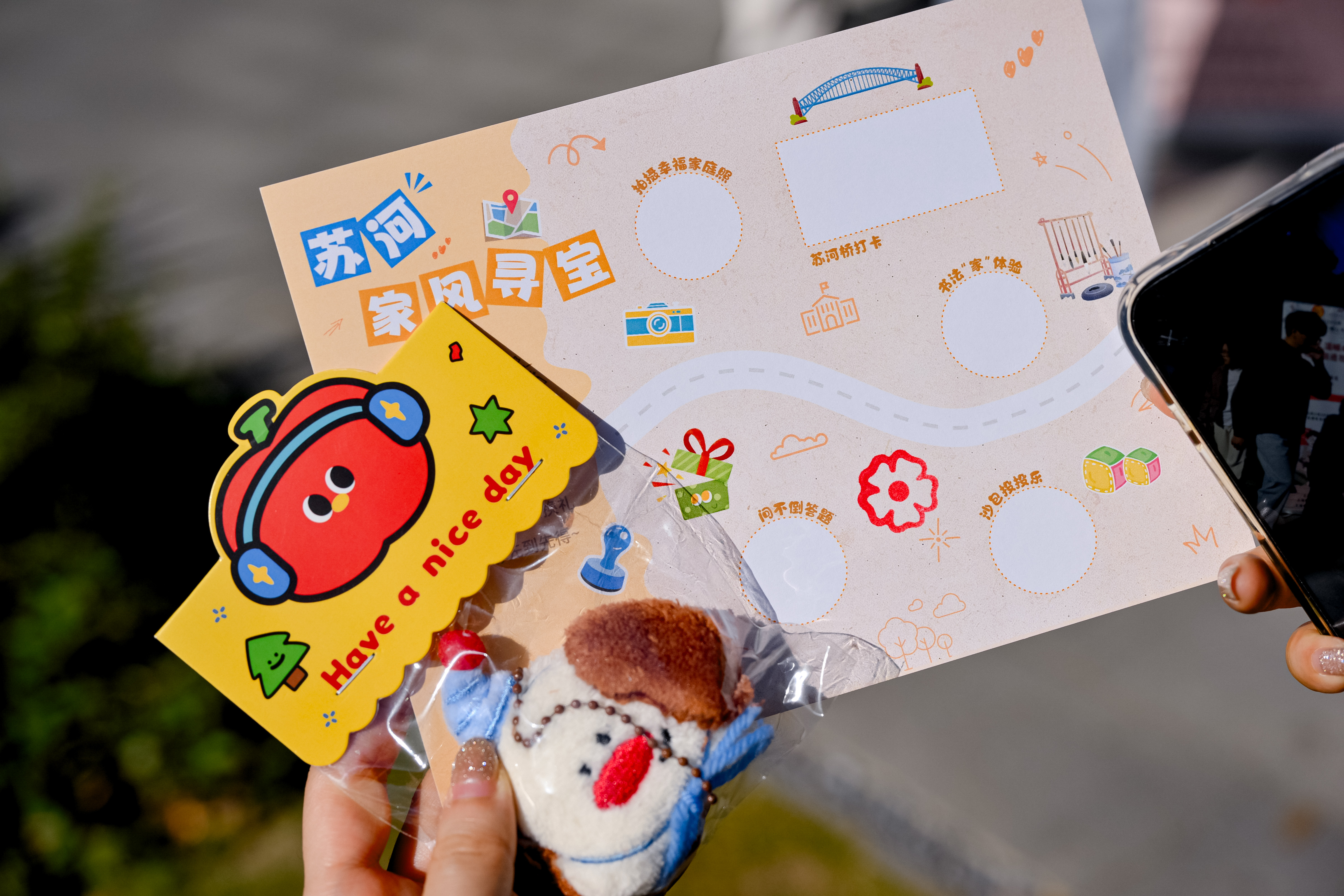 市集设置了非遗面人、剪纸、科学实验等主题摊位,并精心设计了“苏河家风寻宝”互动路线,家庭成员们手持藏宝图,在完成打卡任务、拍摄幸福家庭照、体验传统书法的过程中,深度感受苏河沿岸的家风文化、静美风景及儿童友好氛围。