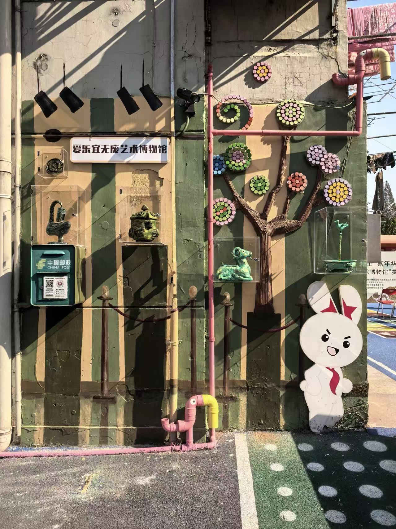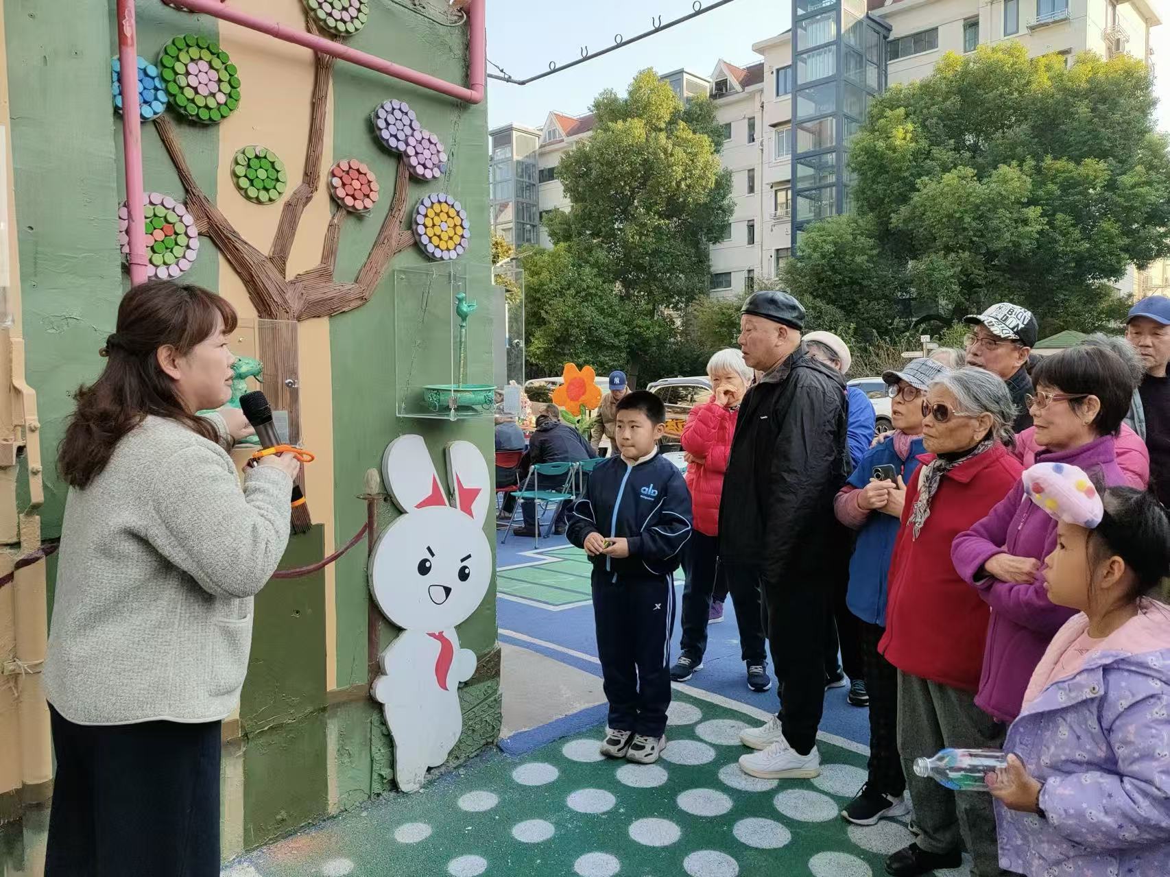 居民们热情得谈论新落成的“爱乐宜无废艺术博物馆”。博物馆由“盖世英雄”墙升级改造而成,既是无废成果的展示阵地,也是中华文明传承的文化科普角。