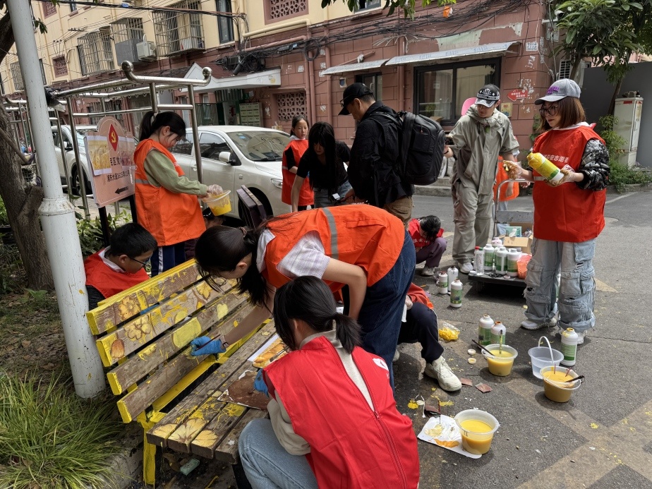如今,“大自然保护植物共建区”的第二期“美上区”,刚刚完成了翻土播种,静待春来发芽。两个小区内的公共休憩座椅,也被艺术家周莉带着小朋友绘制上了大自然保护植物的图像。在此过程中,上海大学社会学院副教授汪丹也带领人类学研究生深入凌一艺术社区参与社会实践。