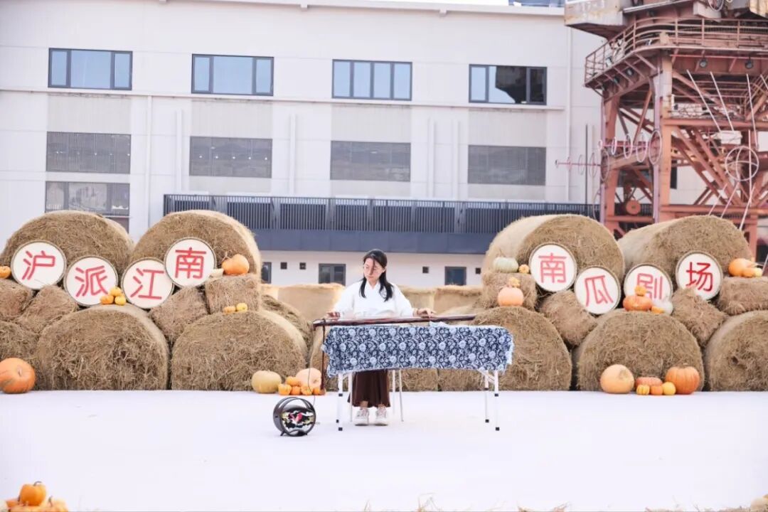 沪郊乡村主题策展,是2025上海城市空间艺术季的板块之一。自今年11月初,每周末都有“沪派江南·复兴市集”在船台公园“开市”,9个涉农区特色农产品、非遗文创产品摊位轮流展出带来热度。目前,已举办松江、青浦、浦东、闵行、奉贤、宝山等专场;草垛搭建的“南瓜剧场”迎来沪郊非遗文化艺术展演,与之相邻的异域风情中欧文化嘉年华,则共同营造出东西文化碰撞的独特氛围。