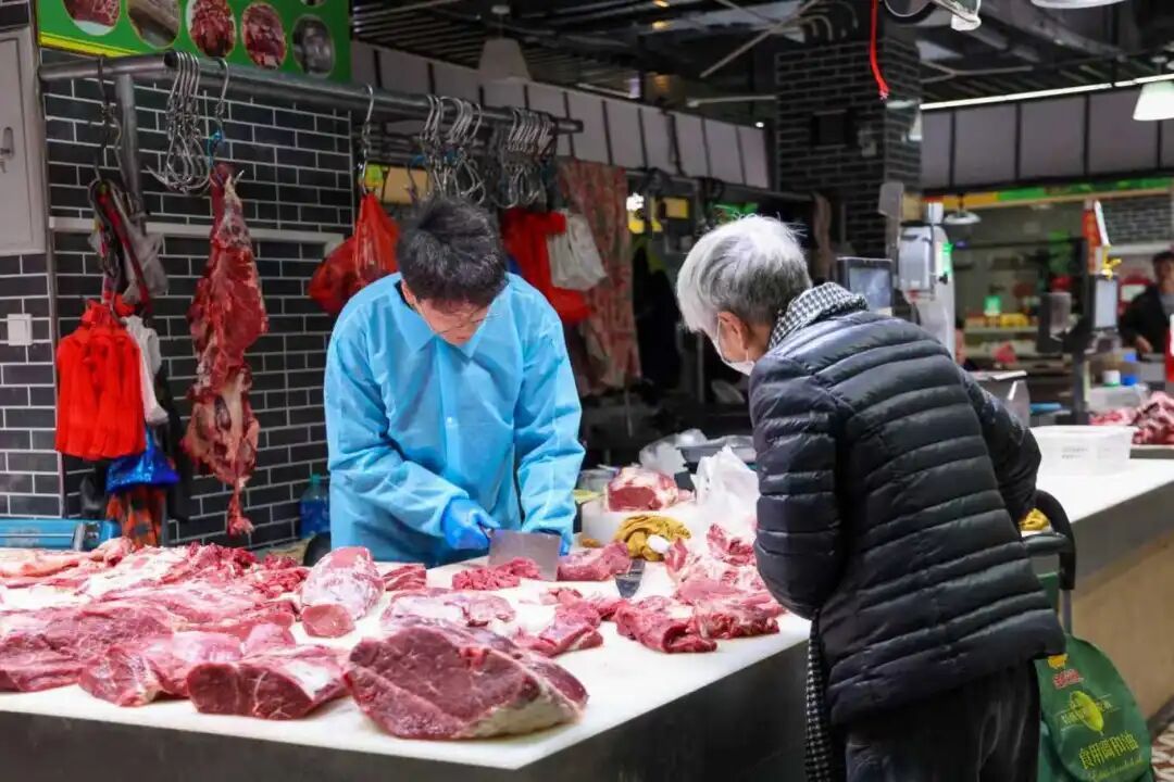 腌肉香飘乡村的同时,金山各大菜市场里的牛羊肉摊也热闹了起来。不少市民专程赶来选购牛羊肉,或炖汤滋补,或涮火锅暖身,摊位前不时有市民驻足询价、挑选。